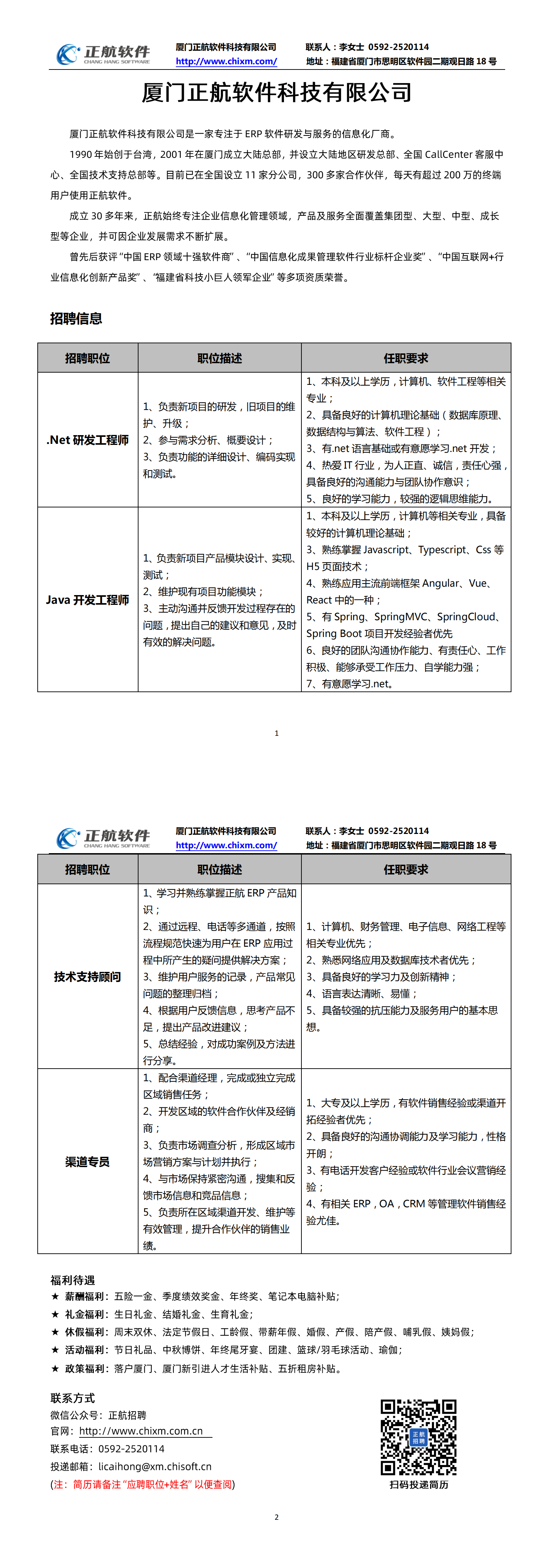 【就业资讯】2024厦门正航软件招聘简章