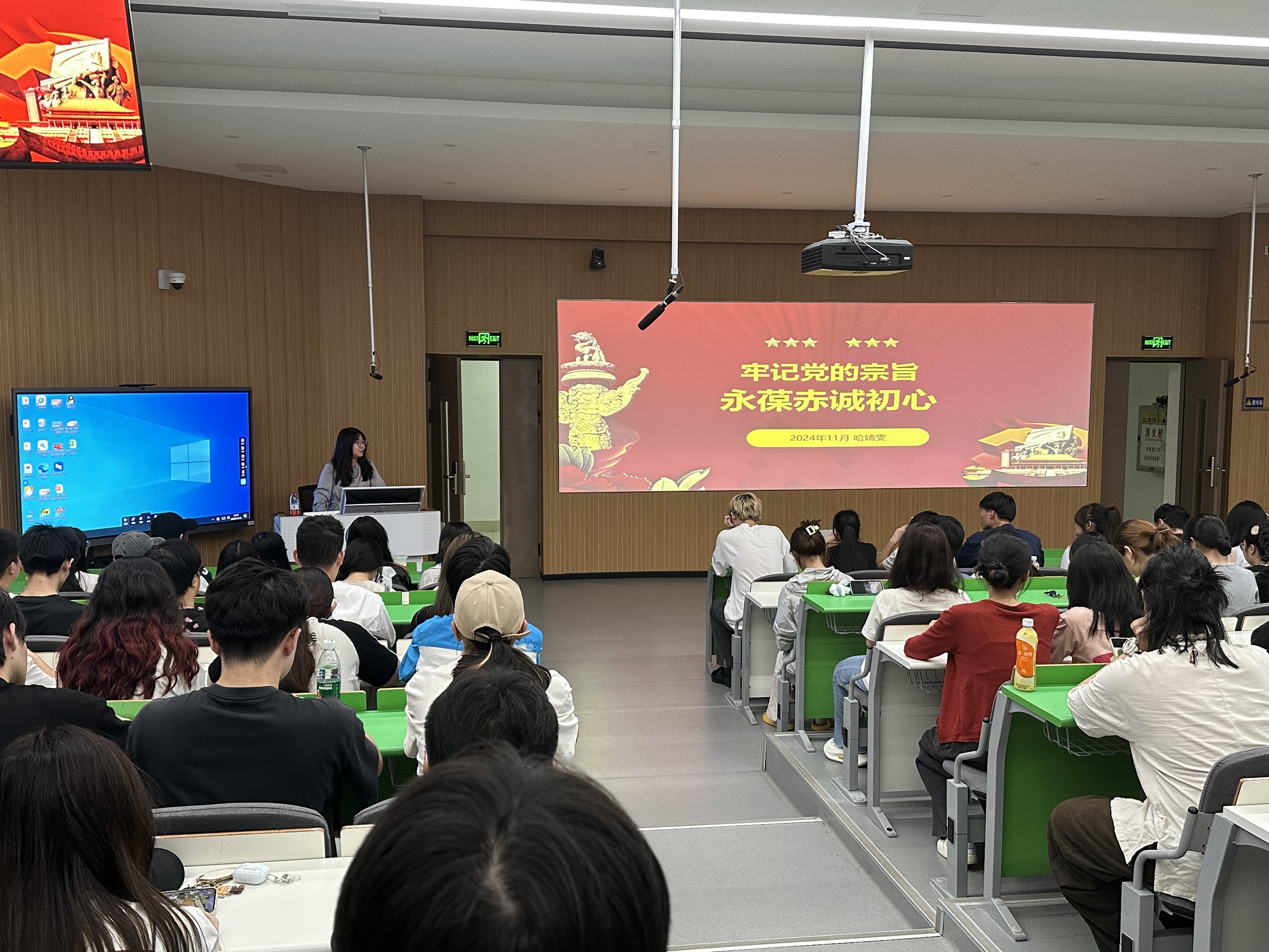 计算机学院学生第四党支部书记哈婧雯以《牢记党的宗旨,永葆赤诚初心》为题展开课程,通过分享张思德同志的事迹,教育引导全体学员深入研究感悟中国共产党人的精神谱系,赓续共产党人的精神血脉,从英模事迹中汲取智慧和力量,不断练就过硬本领,担负起新时代所赋予的责任使命。她指出,全体学员都应当时刻牢记全心全意为人民服务的宗旨,将其内化于心、外化于行,用实际行动践行党的根本宗旨。