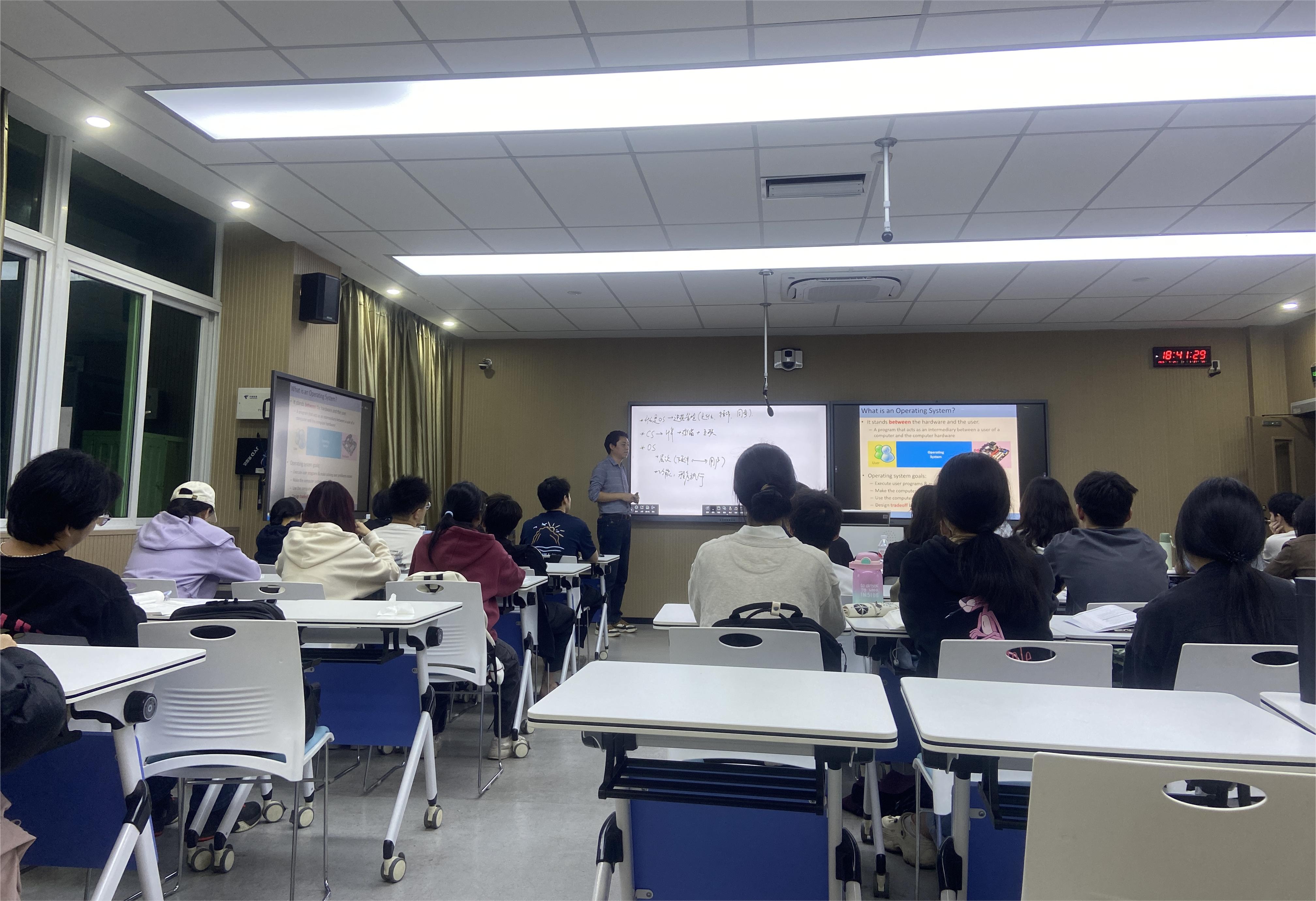 4月24日,中科大李永坤教授到校为2023级计算机实验班学生讲授操作系统课程,现场进行示范教学,许胤龙教授、计算机实验班部分授课教师、操作系统课程组教师等观摩听课。