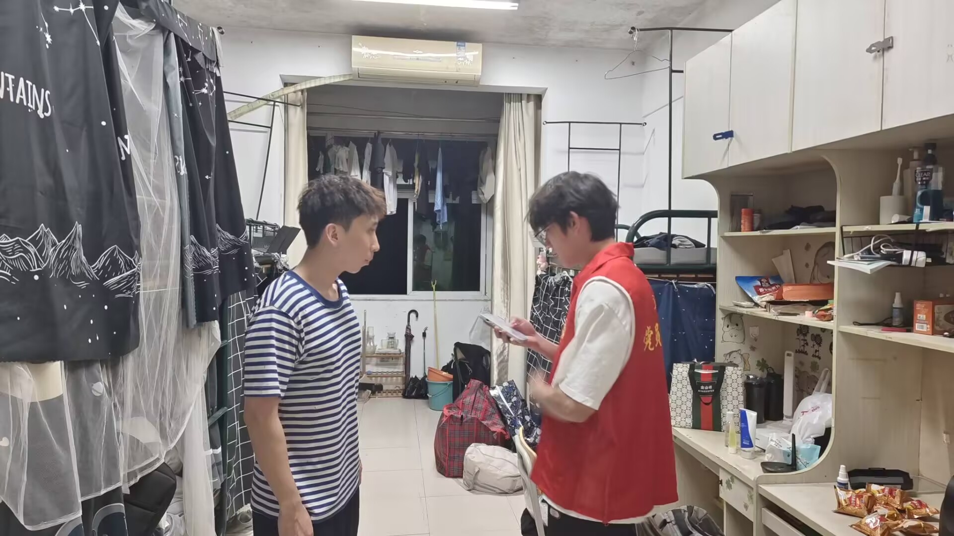 活动当晚,志愿者们分组前往各毕业生宿舍,有序开启志愿服务。活动中,志愿者们提醒毕业生文明离校注意事项,从规范办理离校手续、按时归还图书器材等校规细则,到倡导宿舍清理、垃圾分类的绿色离校理念,从传递友好惜别、文明聚餐的校园情谊,到提醒人身财产安全、求职安全,每一项内容都寄托着对毕业生的美好祝福。