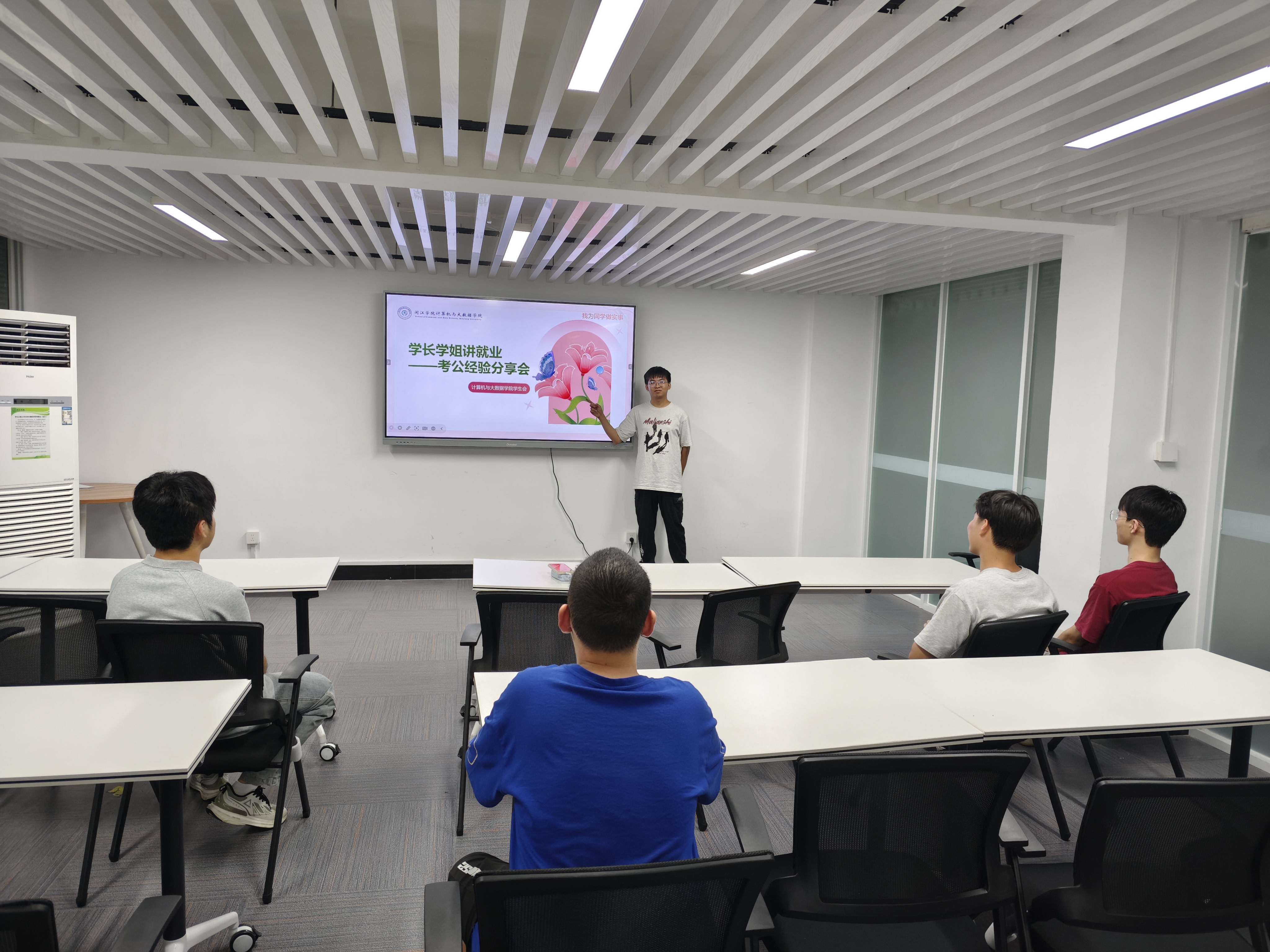 为进一步推动“我为同学做实事”项目实施,帮助意向考公的同学深入了解考公信息、流程及相关备考策略,av在线 学生会于2025年6月19日晚在毓英社区2号楼大学生科创中心举办考公经验分享会。本次分享会特邀两位2021级成功上岸的学长分享实战经验与心得体会,为学弟学妹们答疑解惑。