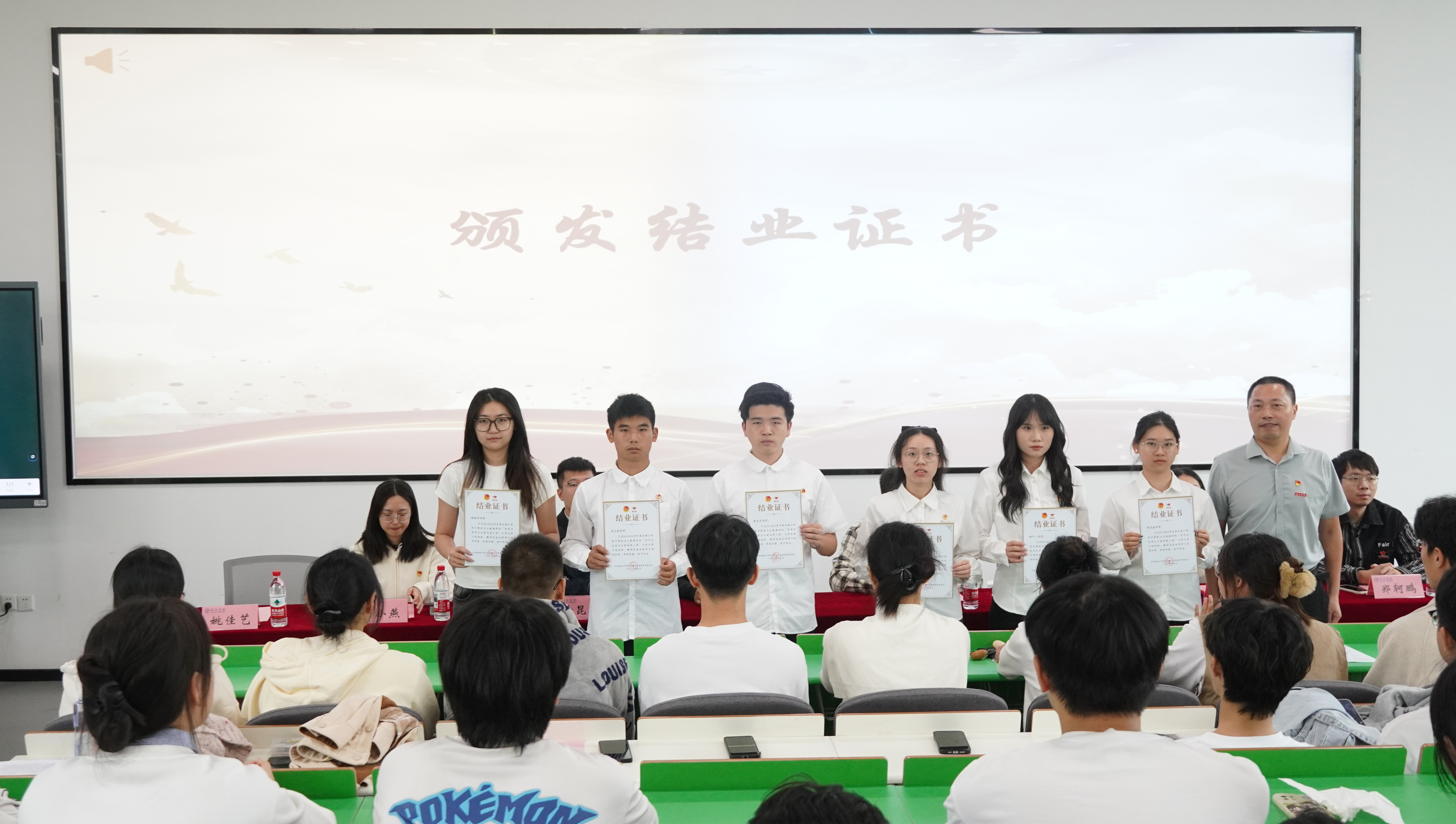 仪式现场,学院党委书记林耿为优秀学员代表颁发结业证书,送上祝贺,并合影留念。这张沉甸甸的证书,不仅是对过往努力学习的一份见证,更是奔赴下一段旅程的序章。他寄语全体学员:一要筑牢信仰之基,始终坚定马克思主义信念;二要锤炼过硬本领,将所学知识和专业发展、社会需求相结合;三要永葆奋斗本色,以青春之力服务人民、奉献社会。