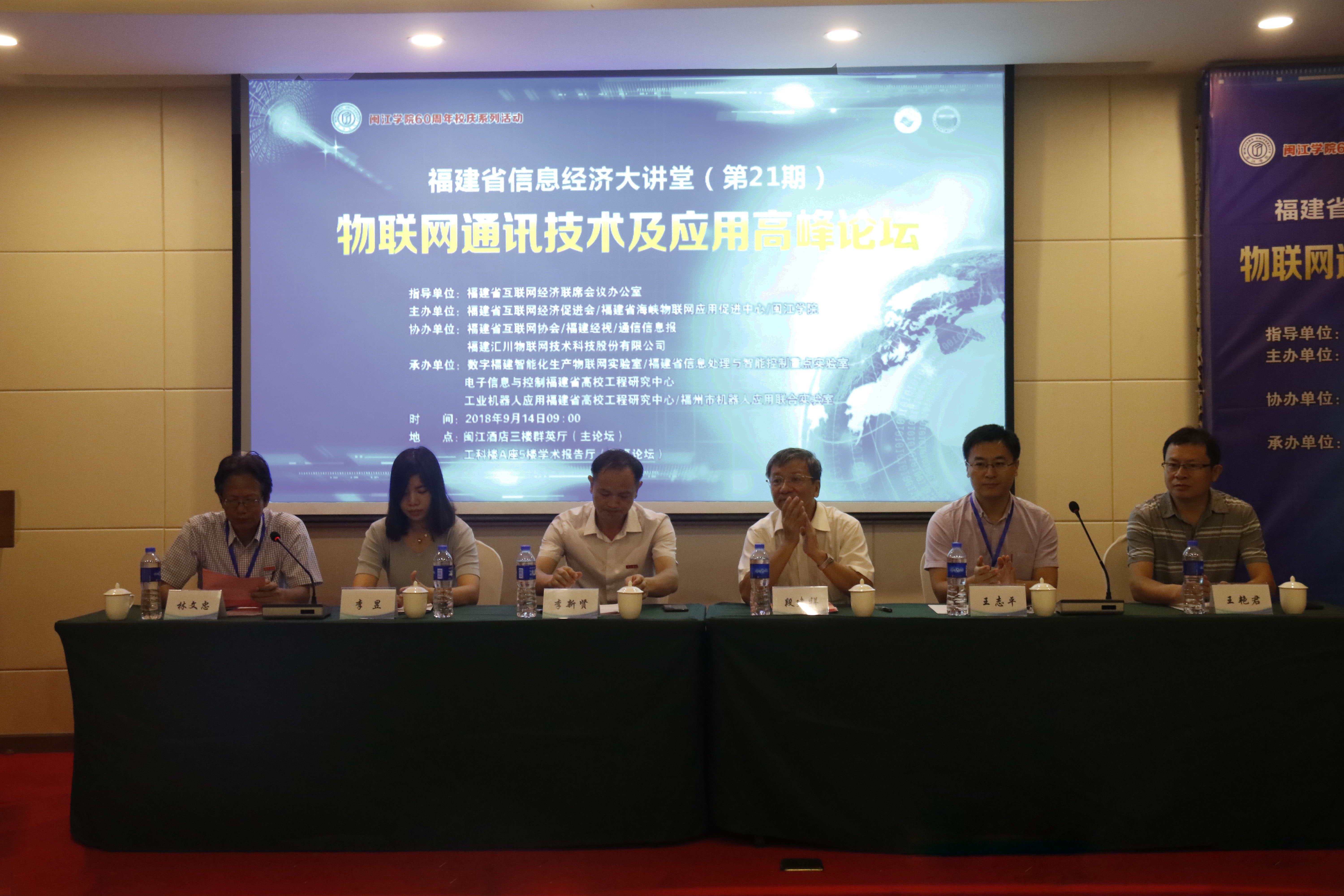 9月14日,av在线 在闽院酒店举办福建数字经济大讲堂第21期·物联网通讯技术及应用高峰论坛,并以并“物联网通讯技术及应用”为主题开展专题学术讲座。会议由av在线 计算机与控制学院林文忠院长主持。现场到场的领导和嘉宾有:av在线 李新贤副校长、福建省互联网经济促进会段建祥会长、福建省海峡物联网应用促进中心代表李昱、中国电信卫星通讯与物联网福建分公司邓晖总经理、中国电科54所产业发展部市场处王志平处长、中国电科54所卫通专业部王艳君副主任。还邀请到了前沿动力公司创始人/总裁/首席科学家胡光初教授、泰尔终端实验室移动终端进网部徐永泰副主任及通信与测试高级工程师尤嘉等为我们做专题报告;此外,莅临现场的还有各兄弟院校物联网实验室负责人、物联网领域相关企业代表等。