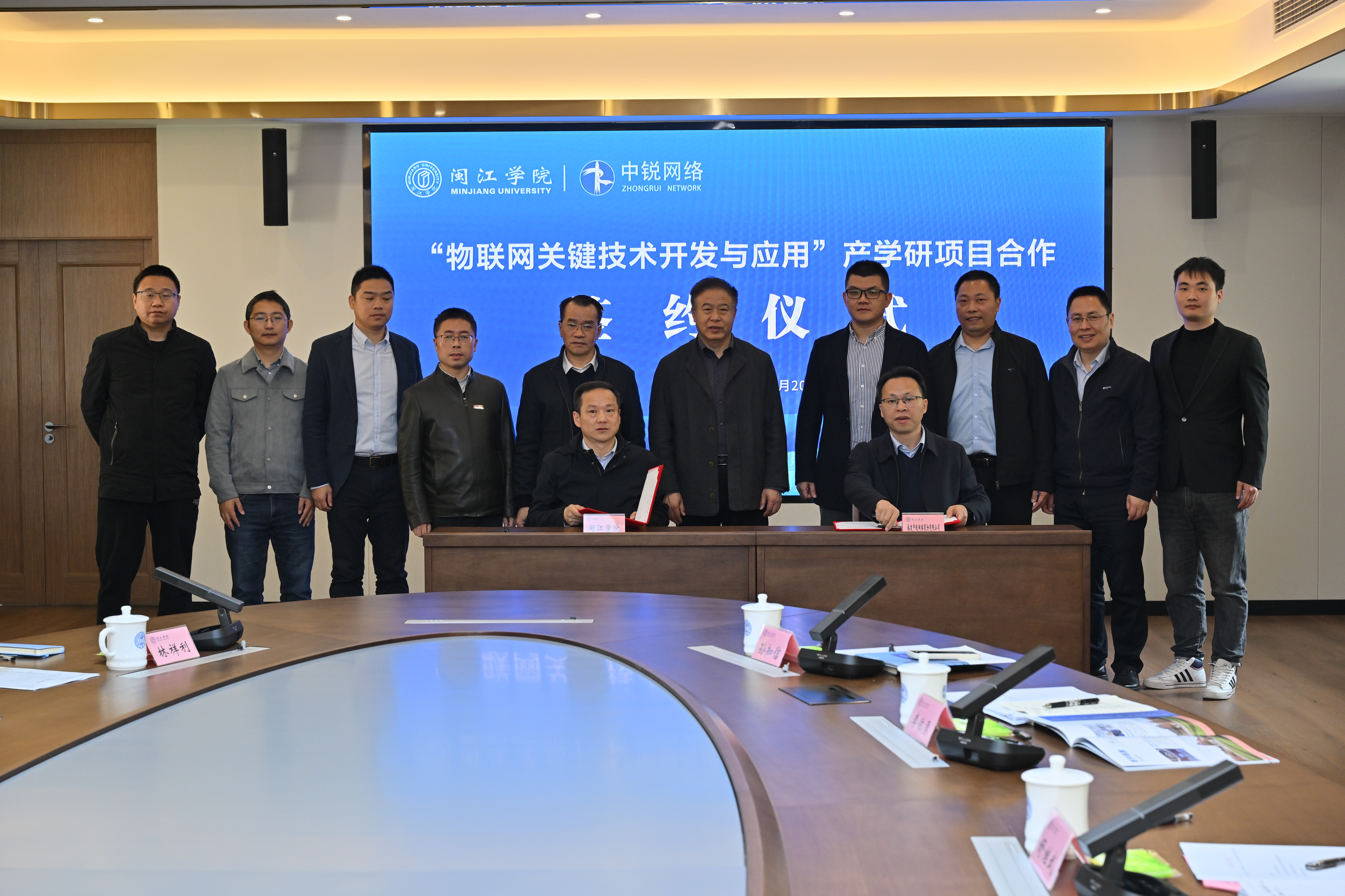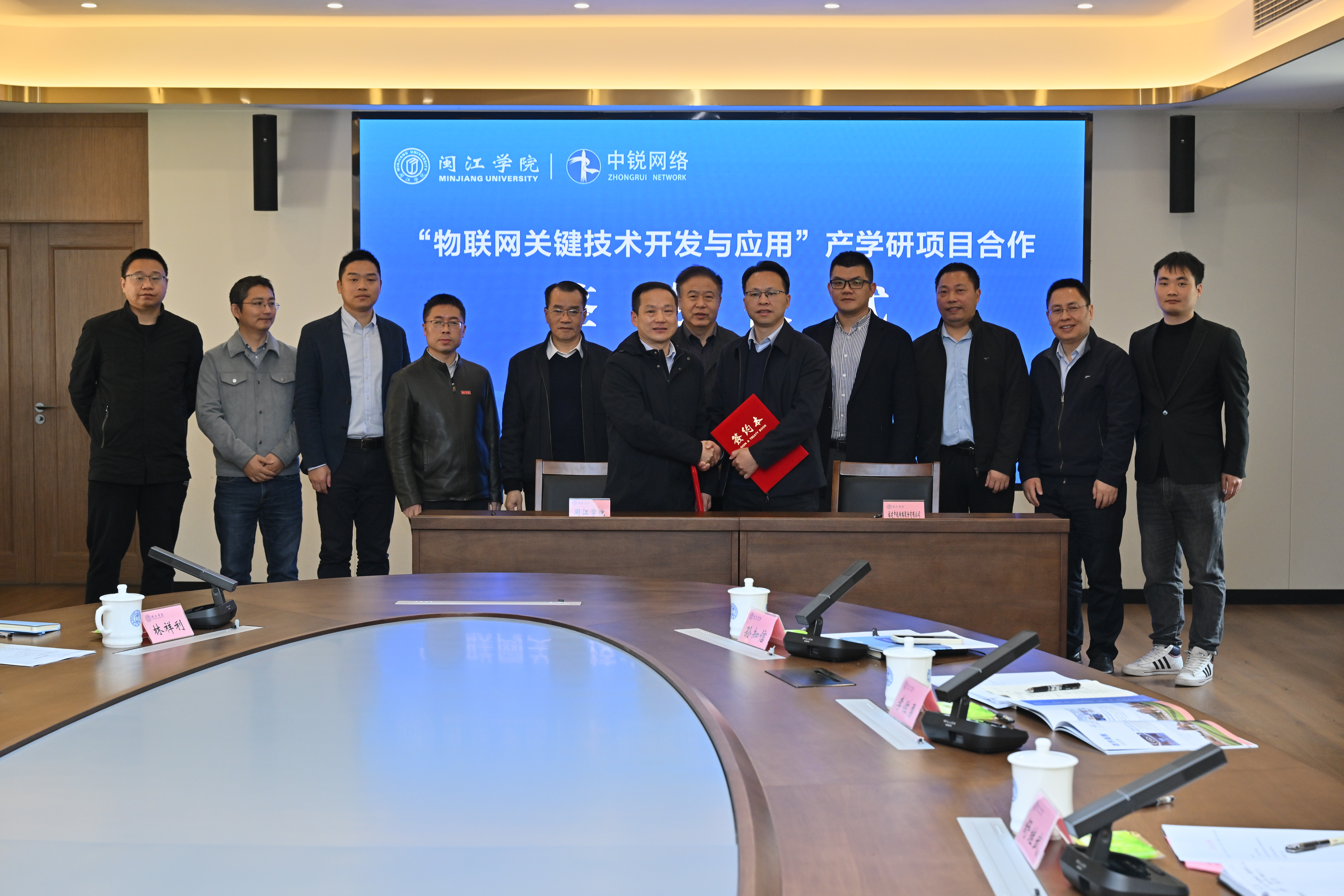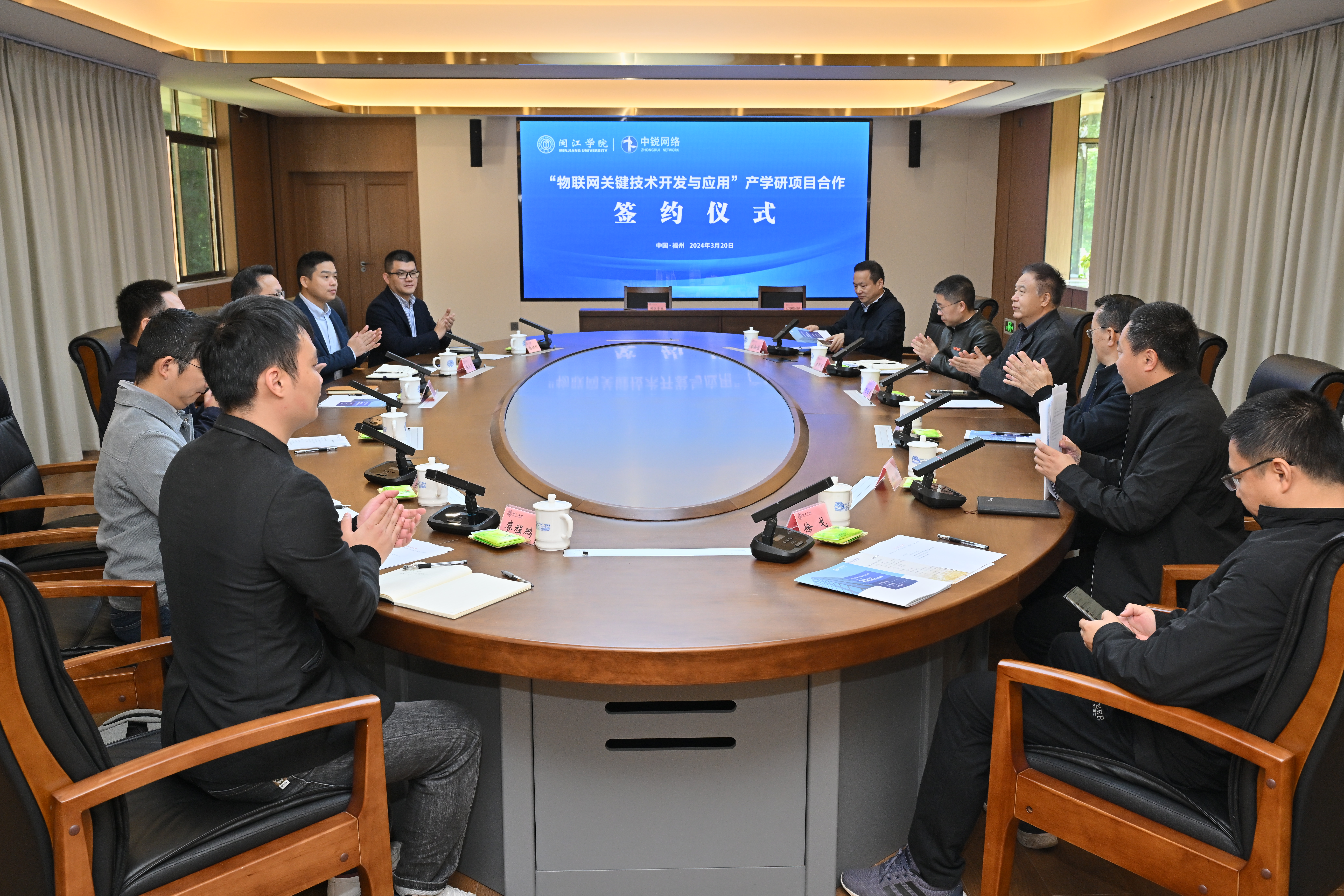 3月20日上午,av在线 举办“物联网关键技术开发与应用”产学研项目签约与启动仪式,校长舒继武、副校长傅高升、科研处李佐勇副处长、计算机学院院领导及教师代表、福建中锐网络股份有限公司黄祖海董事长及企业相关人员参会,会议由计算机学院党委书记林耿主持。