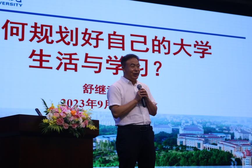 舒校长围绕“如何规划‘最优’的大学生活与学习”主题,结合自身丰富的人生经历和感悟,以质朴的语言和生动精彩的案例,从国家、社会、个人的层面深刻阐释大学生涯的重要价值意蕴,讲授规划和度过大学的路径选择。他对新生们提出七点希望:一是研判世界变化大局,明确中国发展大势;二是厚植爱国主义情怀,心怀科技报国之志;三是更高标准要求自己,保持向上向善力量;四是延续刻苦钻研精神,学思践悟不负青春;五是瞄定未来发展目标,奋楫争先勇立潮头;六是积极应变主动求变,锤炼自身过硬本领;七是建立良好人际关系,常怀感恩感激之心。