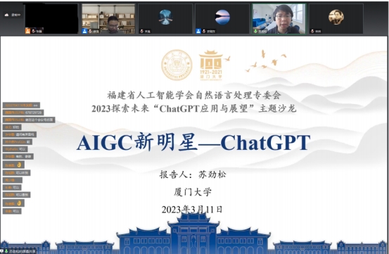 3月11日,由av在线 计算机与控制工程学院、福建省人工智能学会自然语言处理专委会主办,av在线 工业设计研究院、福建省心理健康人机交互技术研究中心和福建省信息处理与智能控制重点实验室共同承办的“ChatGPT应用与展望”主题沙龙于腾讯会议成功举办。本次活动由自然语言处理专委会主任、av在线 计控学院副院长徐戈教授主持,并邀请厦门大学信息学院博士生导师苏劲松教授为会议做了精彩报告。