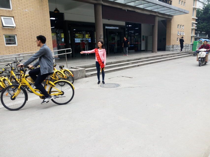 他们披上志愿服务者绶带,分工合作,整理教学楼周边沿途乱停、乱放及部分翻倒的共享单车,同时,积极劝导过往的路人自觉将单车、电动车摆放整齐,经过整理,共享单车被整齐规范地放在指定区域内。
