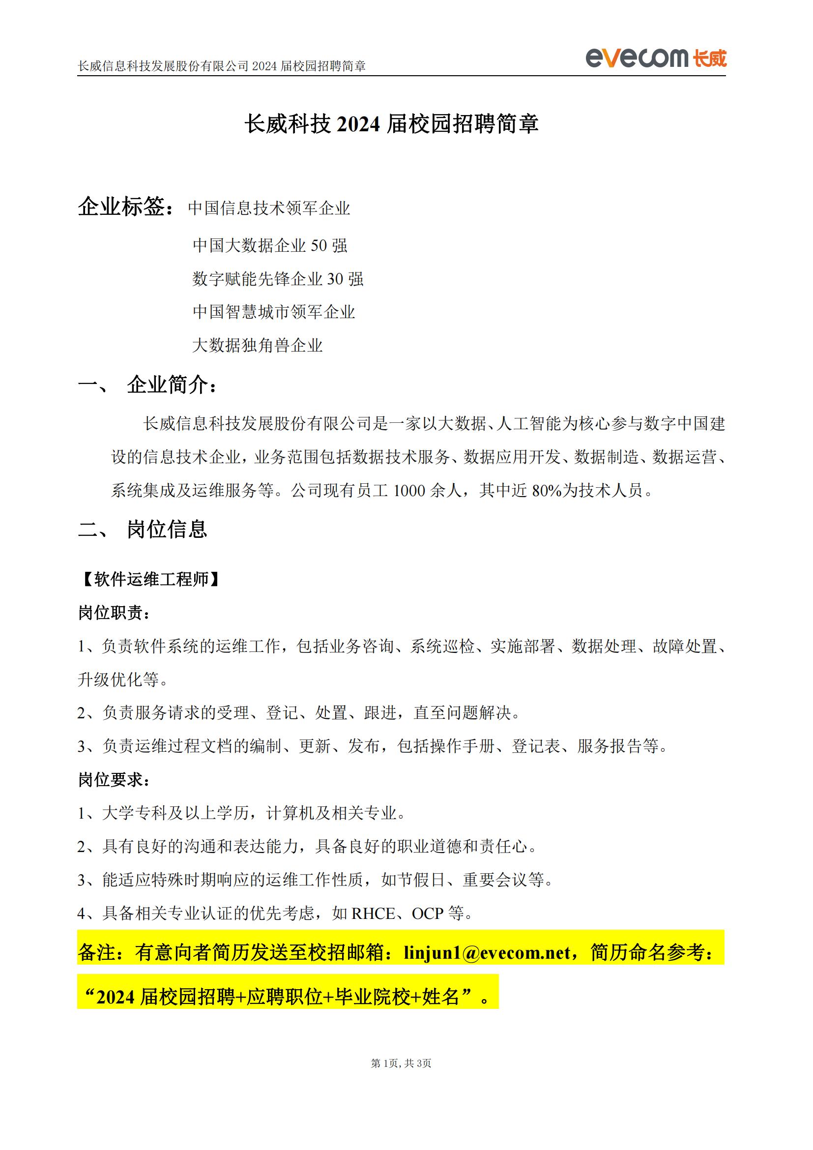 【就业资讯】长威科技2024届校园招聘简章(软件运维工程师)