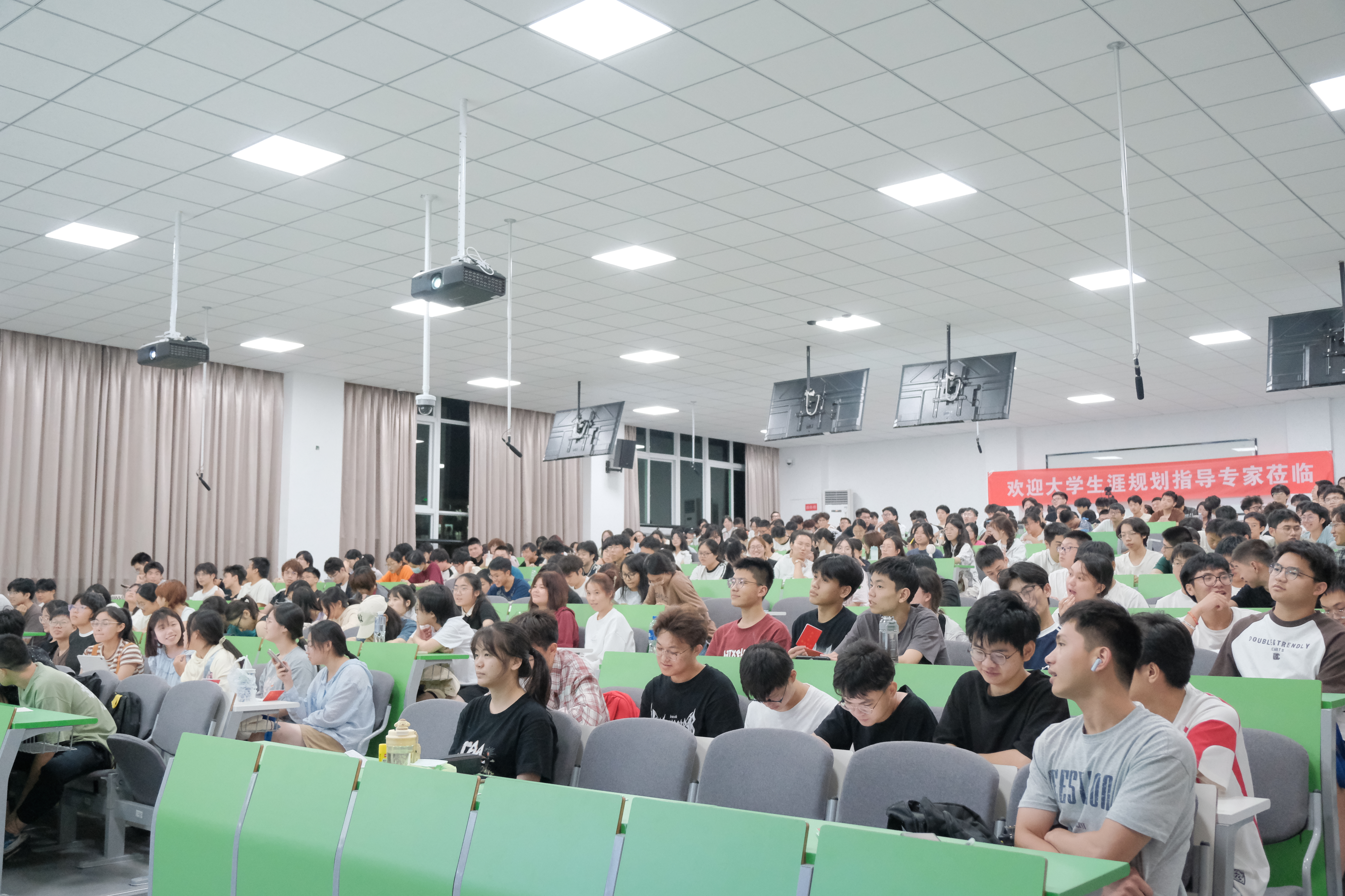 鲍俊浩老师以人格特征和个人能力为出发点,以企业需求和价值观为导向,点明同学们应提升成绩、英语、社会实践、学术实践、竞赛经历、综合素质六维度核心竞争力,为规划大学时间轴提供了明确的方向。答疑环节,同学们积极提问,鲍老师与听众亲切沟通交流,为同学答疑解惑。