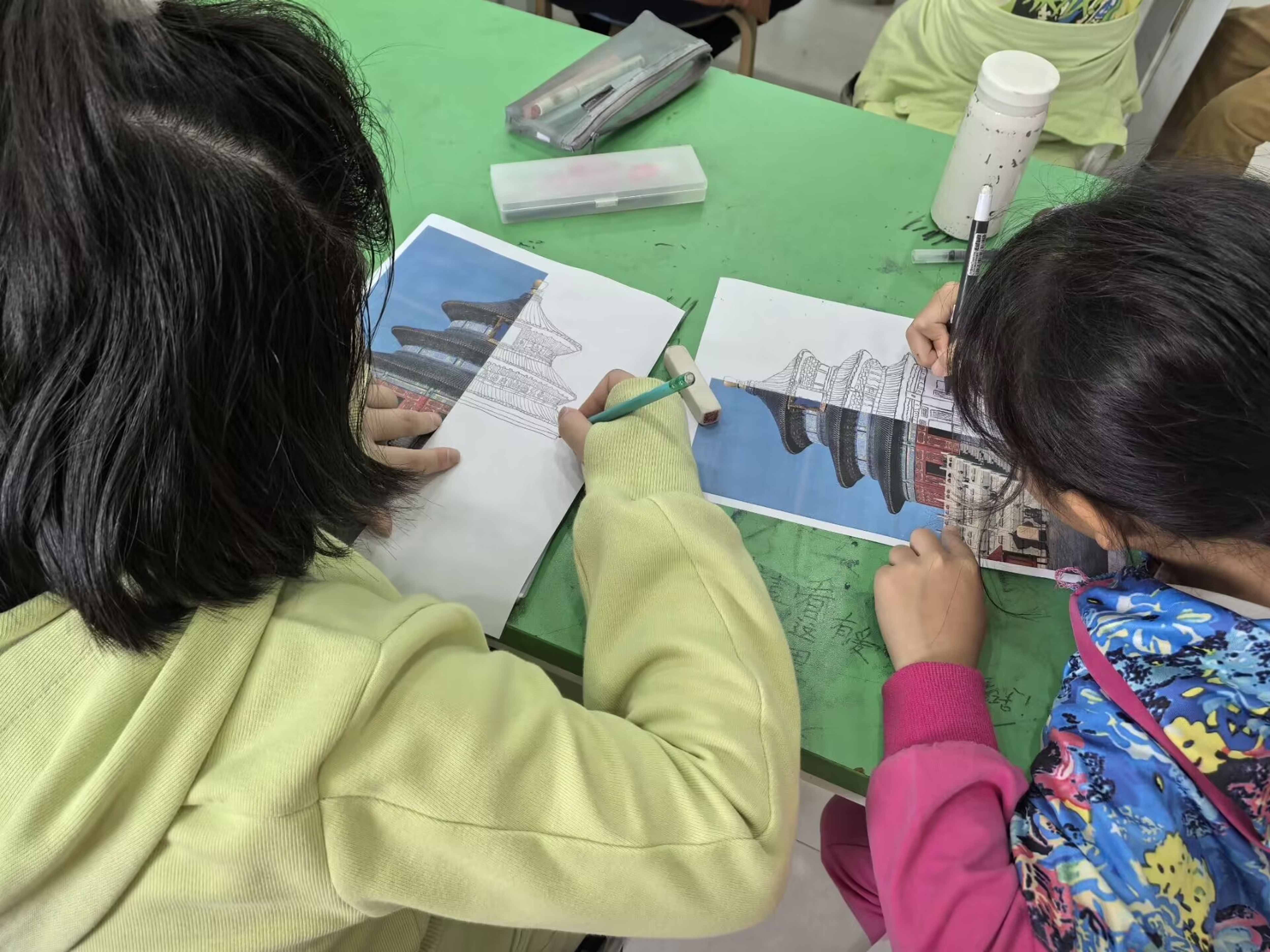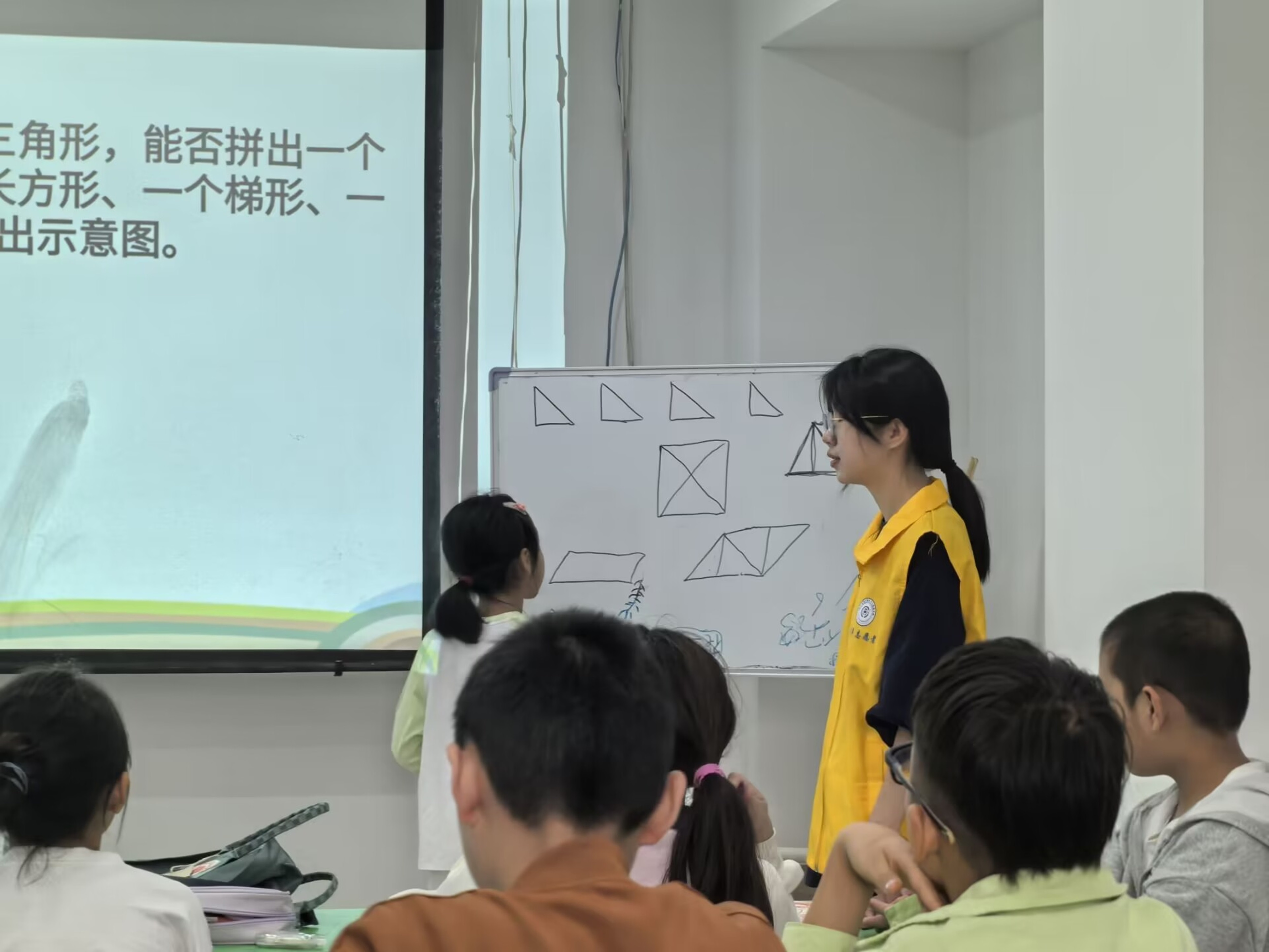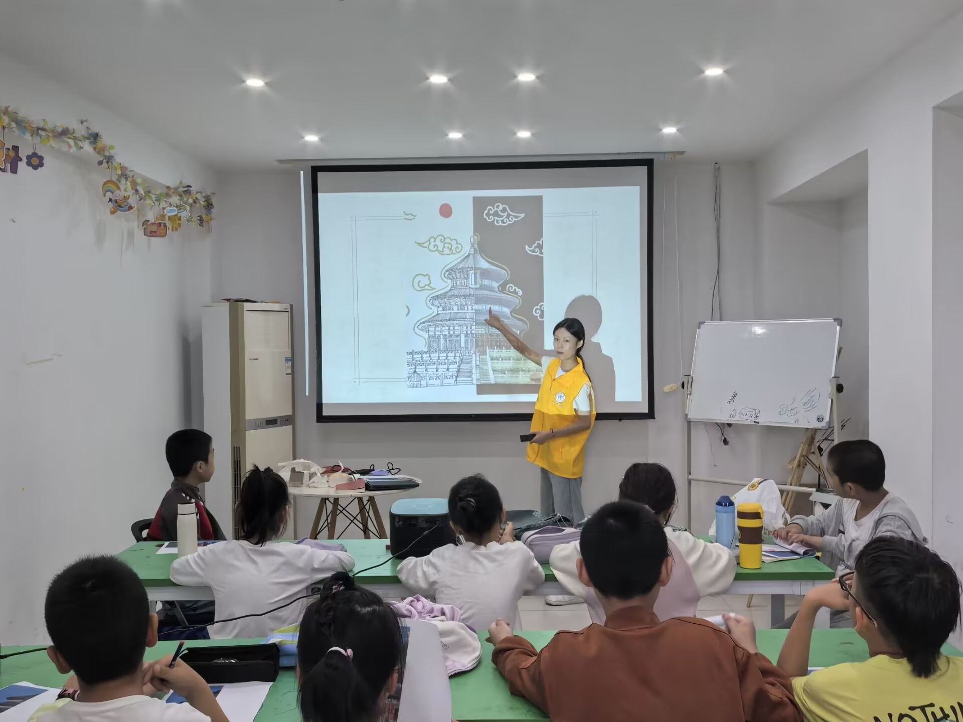 奥数课上,志愿者让孩子们通过动手画图的方式,帮助孩子们自主理解和把握图形的分割与拼接的重点。数独课上,志愿者通过丰富的问答互动,调动孩子们的热情,使课堂氛围活跃且有序,让孩子们掌握数独解题技巧,完成多道数独难题。编程课上,小朋友们对于编程语言相关知识充满了好奇心,因此志愿者通过互动教学,让孩子们在轻松愉悦的氛围中学习有关编程运行的相关知识。艺术课上,志愿者借助视频与图片双重媒介,将那北京天坛对称之美展现在孩子们眼前,并让孩子们动手绘画出仅有一半图形的艺术画,去创造独属自己的艺术之美。