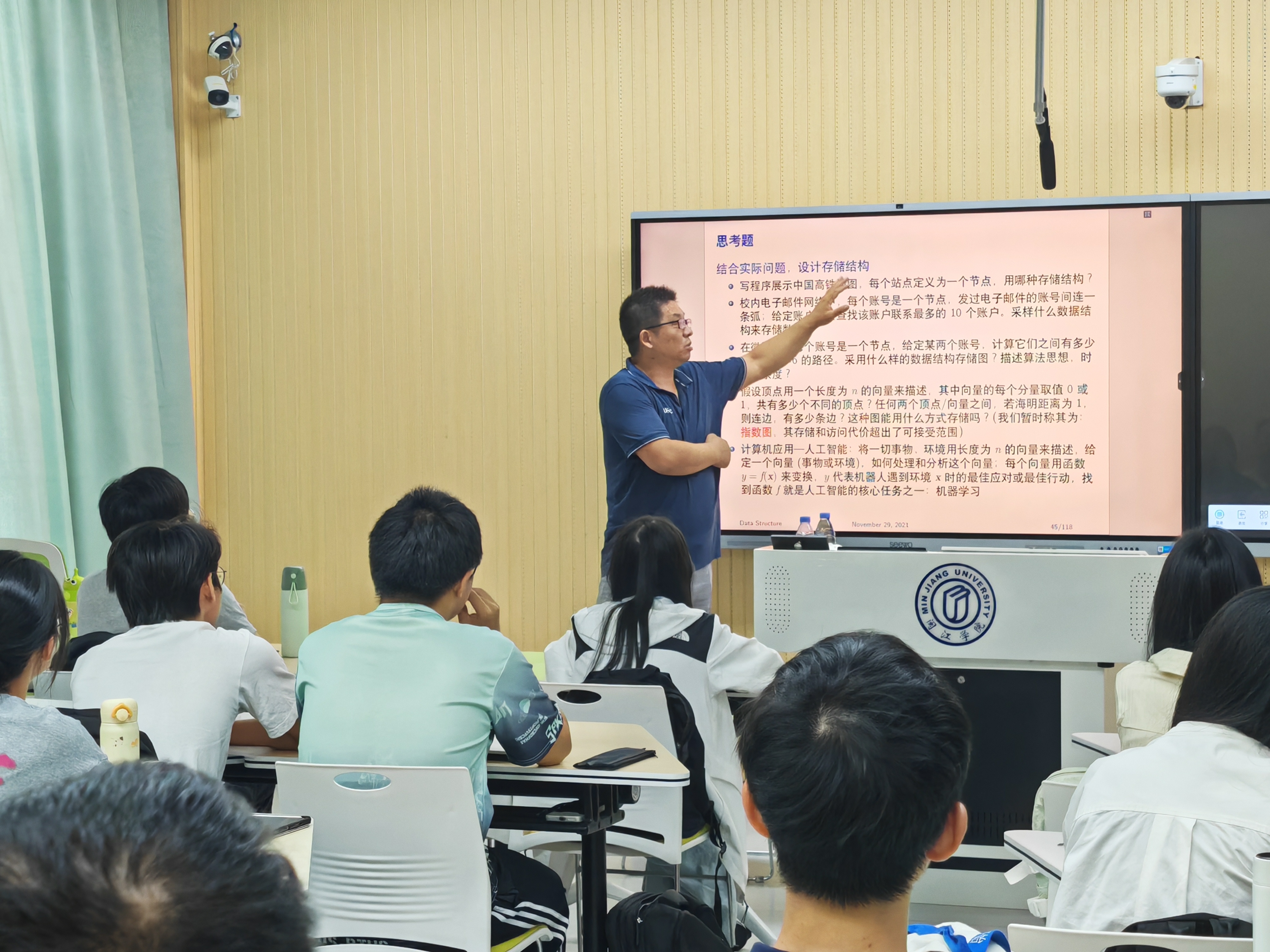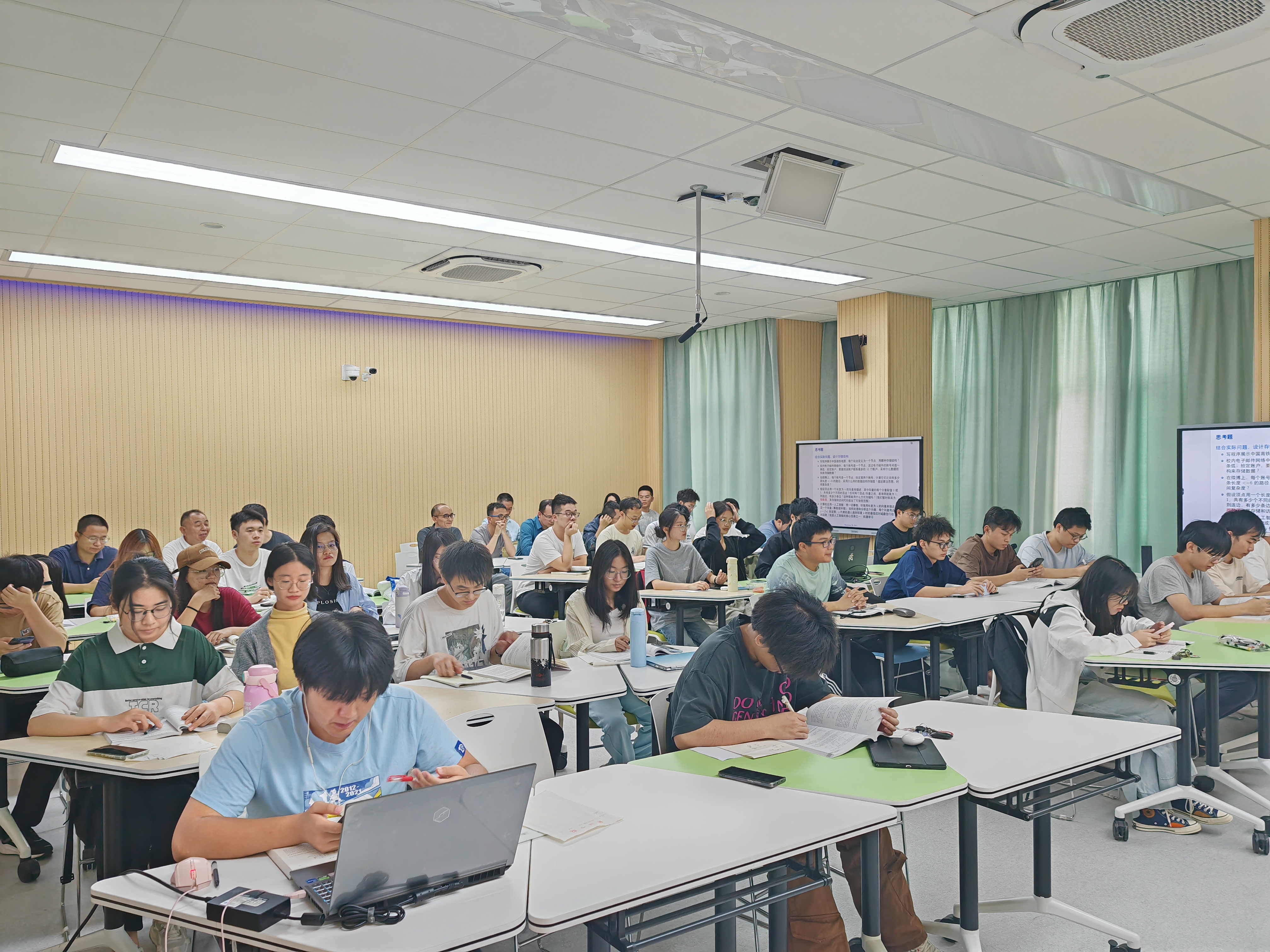 本次课程共计四个课时,李教授从现实问题出发,深入浅出地讲解了图的基本概念、广度优先搜索和遍历、以及深度优先搜索和遍历等内容,并结合实际案例为同学们展示了这些算法在图相关问题中的具体应用,以及如何将实际问题建模成图并用对应算法求解。课堂上,李教授通过生动的实例与学生们进行频繁互动,解答了同学们的问题,激发了大家对图的浓厚兴趣,为未来的学习打下了扎实的基础。
