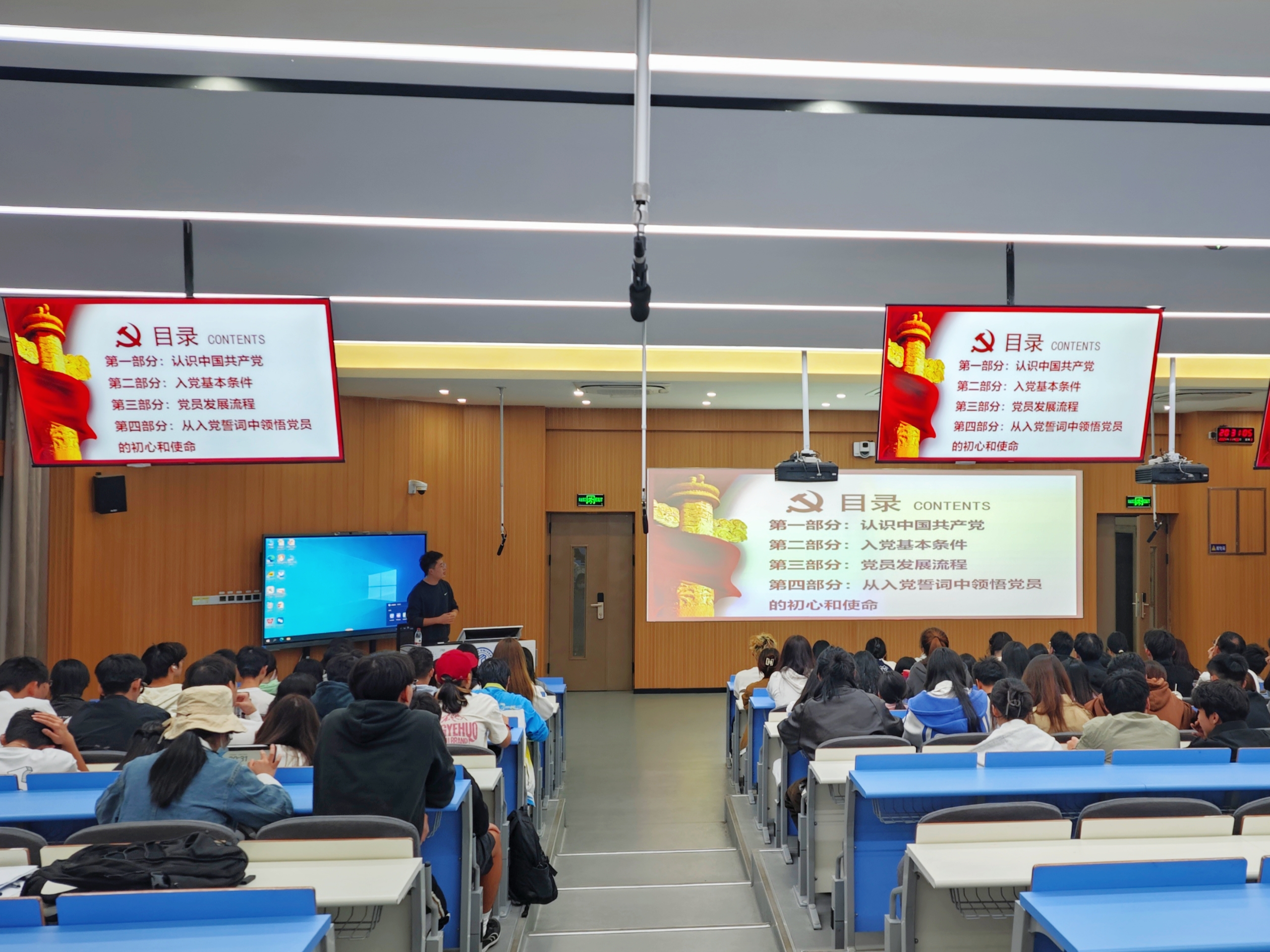 计算机学院学生第三党支部书记陈之标以《端正入党动机,明确入党流程》为题,就入党的基本条件及党员发展流程进行了详细的讲解,帮助同学们更加清晰地了解入党流程,进一步深刻领悟端正入党动机的重要性。通过讲述入党誓词的演变过程,生动介绍了中国共产党的发展历程。陈之标指出,作为一名入党积极分子,应该深刻认识到,理解并践行党的宗旨与性质是向党组织靠拢的必经之路,全体学员要以党的宗旨为指引,不断端正入党动机,努力成为有理想、有本领、有担当的时代新人。