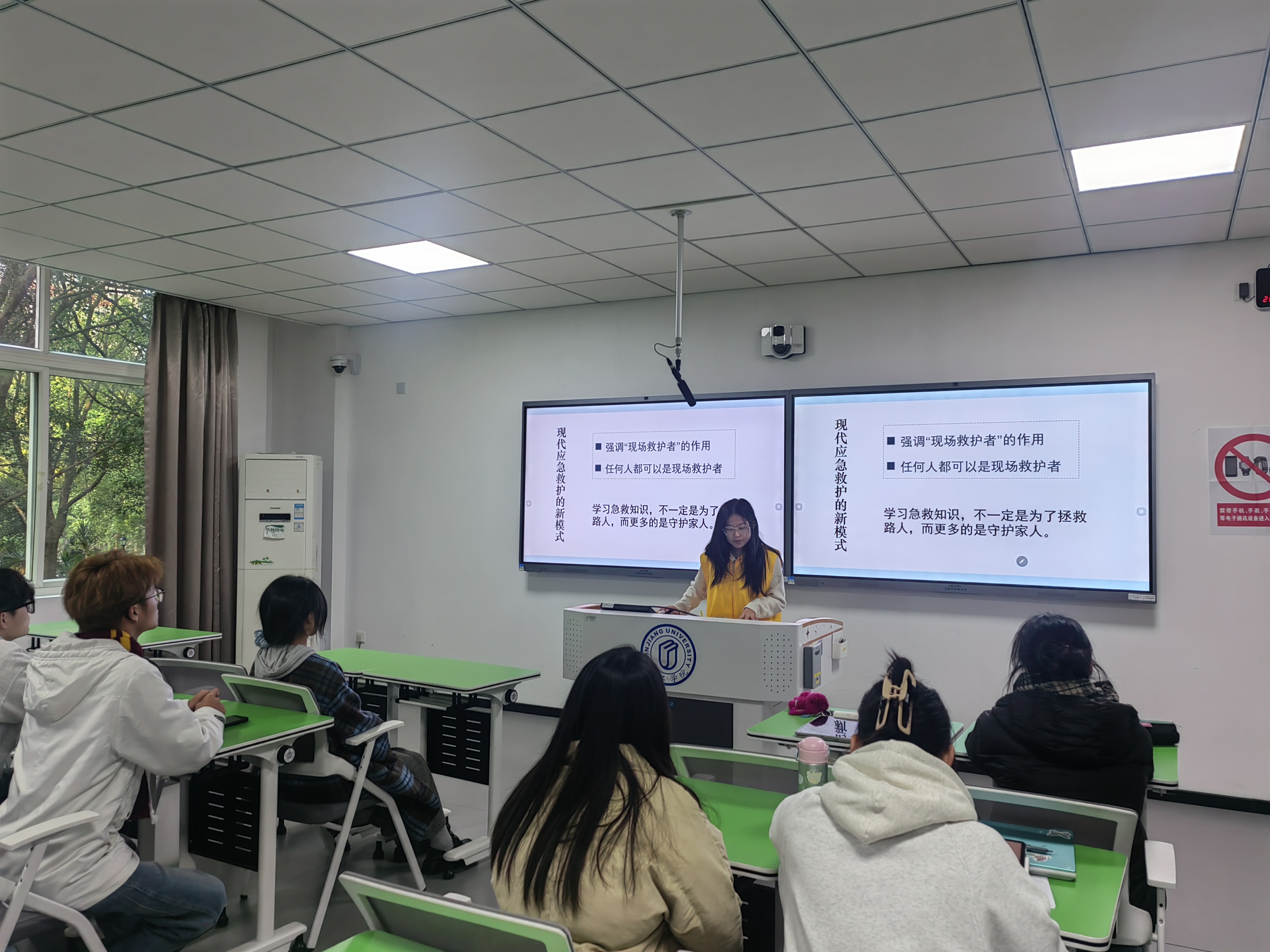 本次活动邀请了学院青年志愿者服务中心副主任陈丽婷同学为大家详细讲解并演示了心肺复苏、海姆立克急救法、创伤包扎等关键急救技能。通过结合实际案例,深入浅出地讲解了急救的重要性和紧迫性,让同学们深刻认识到在紧急情况下急救措施的重要性和掌握急救技能的必要性。
