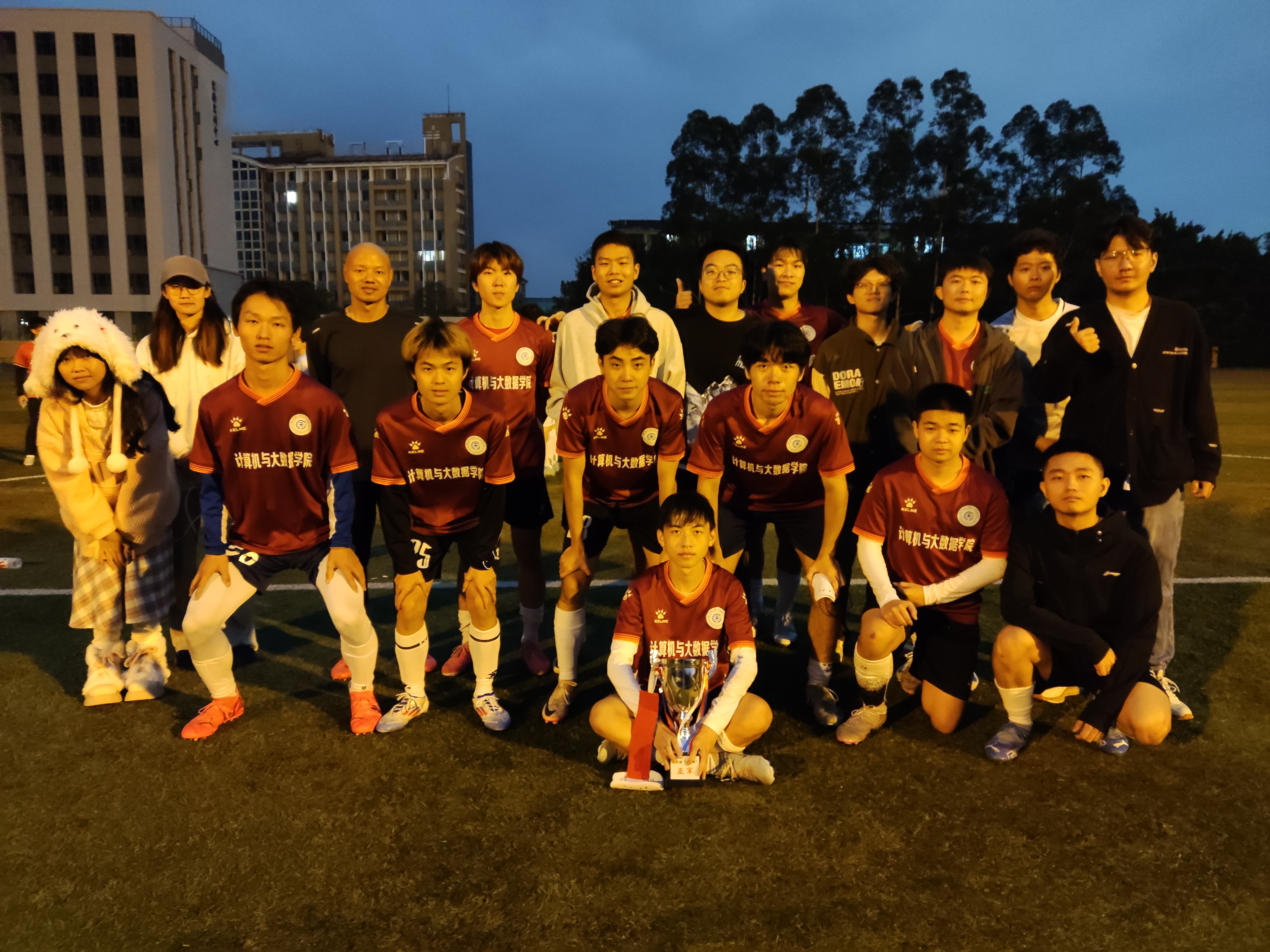 在总决赛中,他们对战实力强劲的海物美联队(海峡学院、物电学院、美术学院)。上半场,他们打出了强硬的进攻和铁墙般的防守,但计算机学院的“盾”还是被物海美联队的“矛”戳破了缺口,以0:1暂时落后海物美联队。在下半场,队员们顶住了比分的压力,开启了专属于他们自己的节奏,他们用着无比熟练的配合夺得一分,将比分打平,将比赛踢进白热化阶段,最终在点球大战中遗憾不敌对手。队员们展现了非凡的拼搏精神与团队协作能力,他们的每一滴汗水,每一次冲刺,都铸就了今日的辉煌。未来,他们必定再创佳绩!