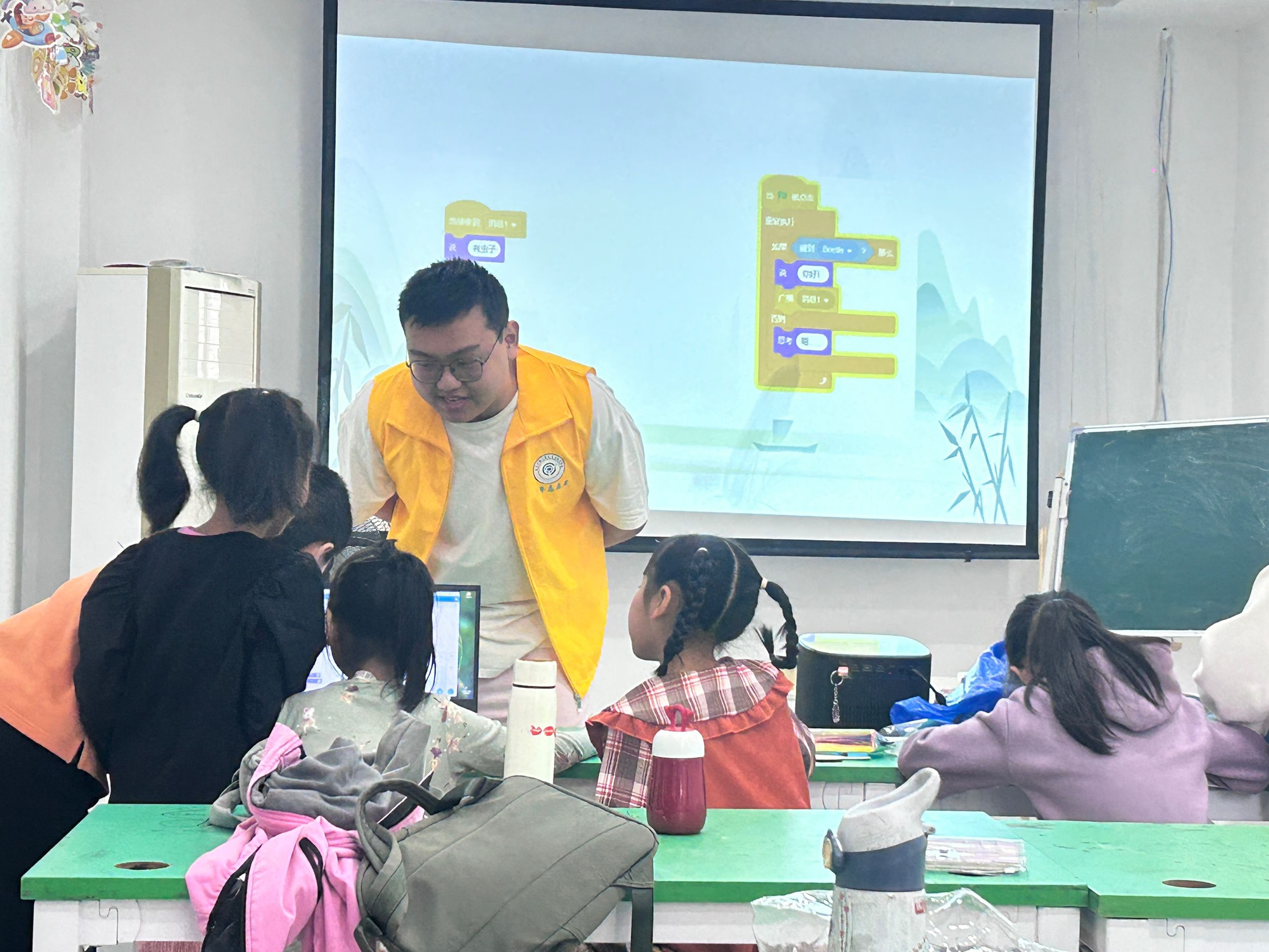 编程课程对于小朋友们而言,就像是打开了一扇通往未来科技世界的魔法门。在初识编程阶段,志愿者们向小朋友们介绍编程的基本概念和发展历程,从简单的指令操作开始,逐步引导他们理解编程逻辑,创造出属于自己的小作品。当小朋友们掌握了基础的编程思维后,便开始深入学习编程语言。他们在志愿者的耐心指导下,尝试编写简单的程序,让屏幕上的角色动起来。理论与实践相结合的授课形式帮助小朋友们更好地巩固,也激发了小朋友们对编程的兴趣。