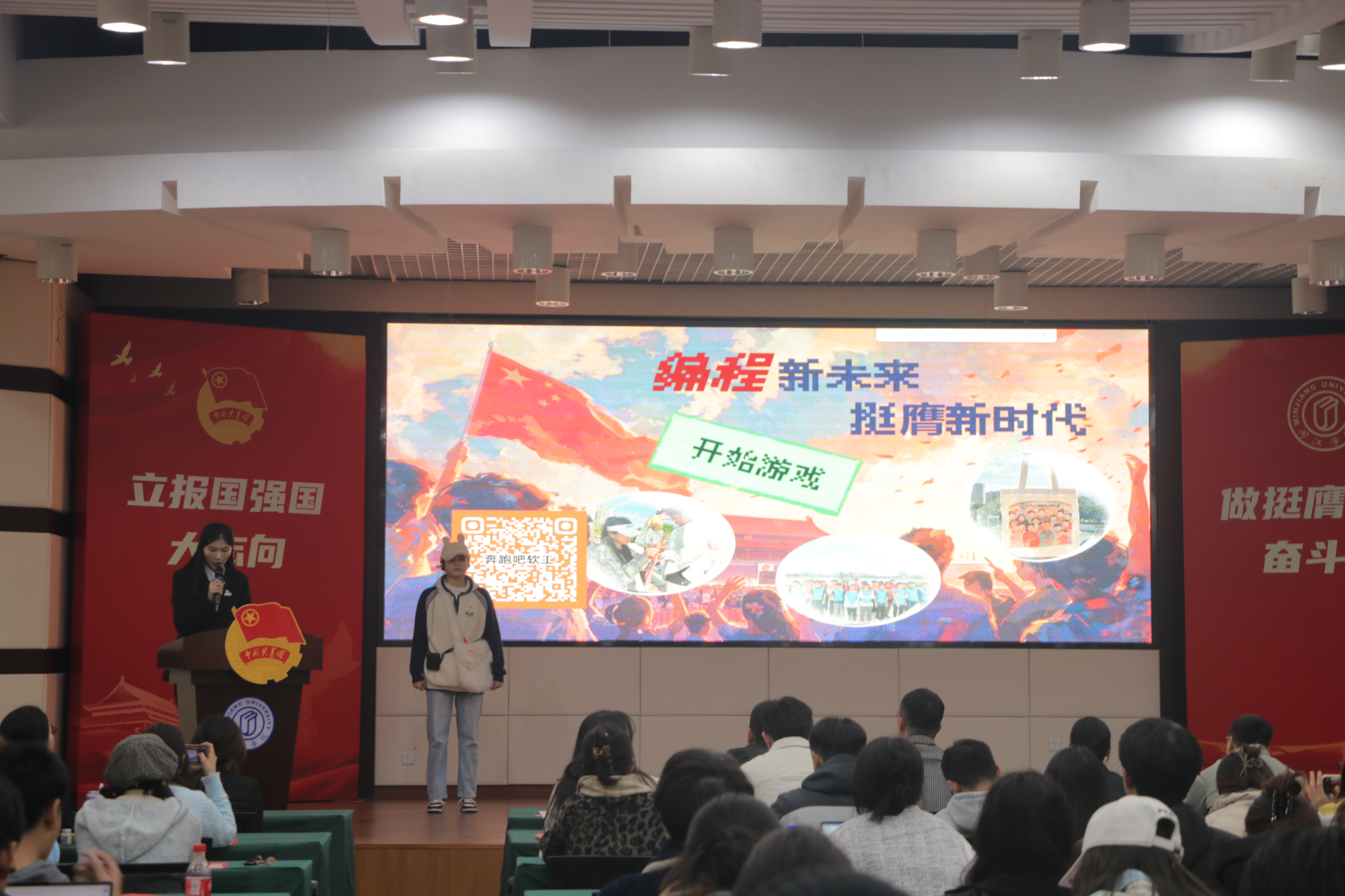 决赛现场,2022级软件工程2班团支部以“编程小游戏”PPT的方式拉开了序幕,运用创新的表现形式对充满爱国情怀的手工制品进行了展示,通过表演与先辈跨时代的对话展现出一代又一代人的奋力拼搏,为国家发展贡献出青春力量的青春作为,最后,他们用一首《我爱你中国》为本次成果展示拉下了帷幕,最终获评校十佳主题团日活动。