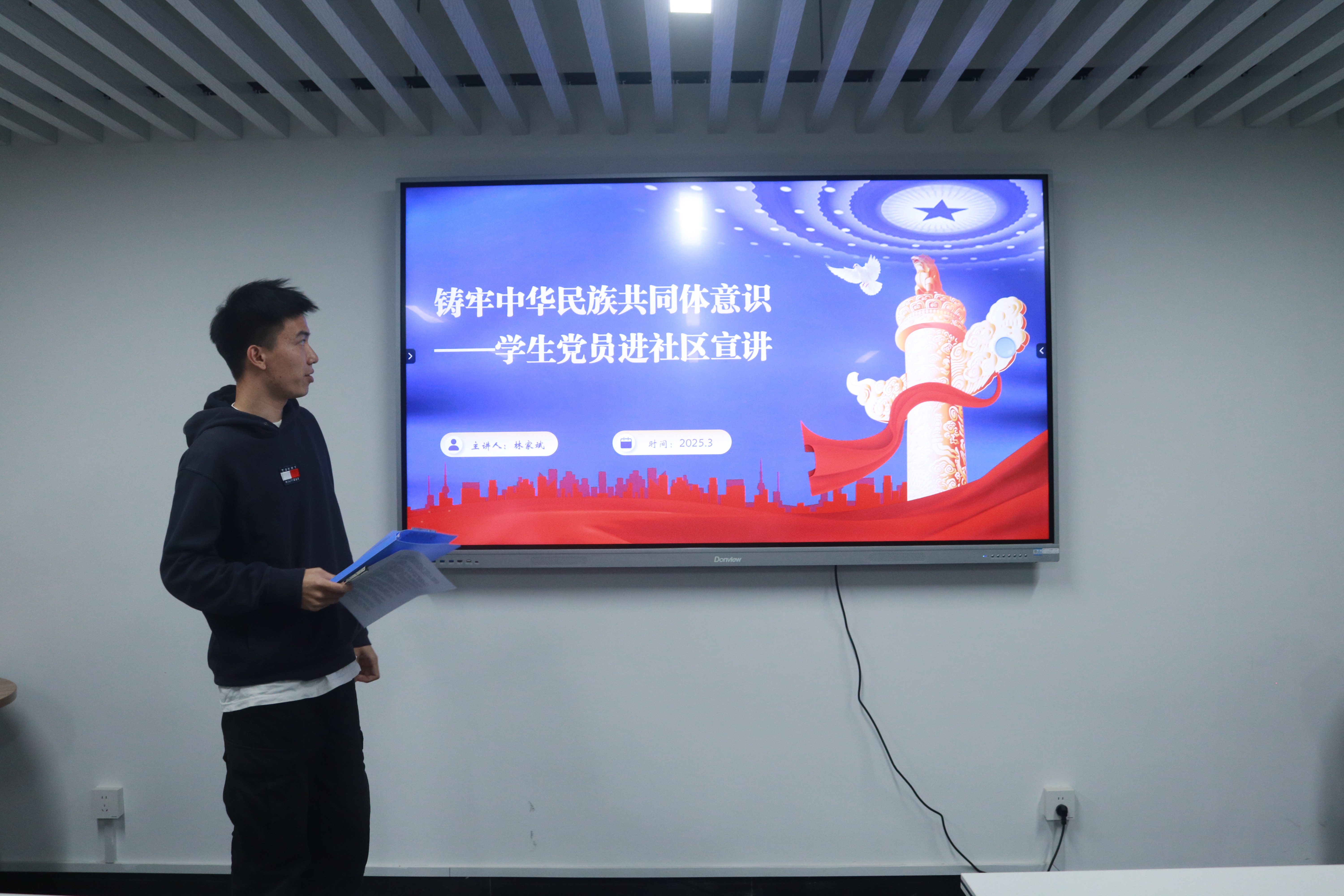 学院组织学生党员走进社区开展主题宣讲,从历史维度出发,讲述中华民族多元一体的格局是如何形成的以及各民族在共同奋斗中结下的深厚情谊,从现实角度出发,分析当前形势下加强民族团结、维护国家统一的重要性。