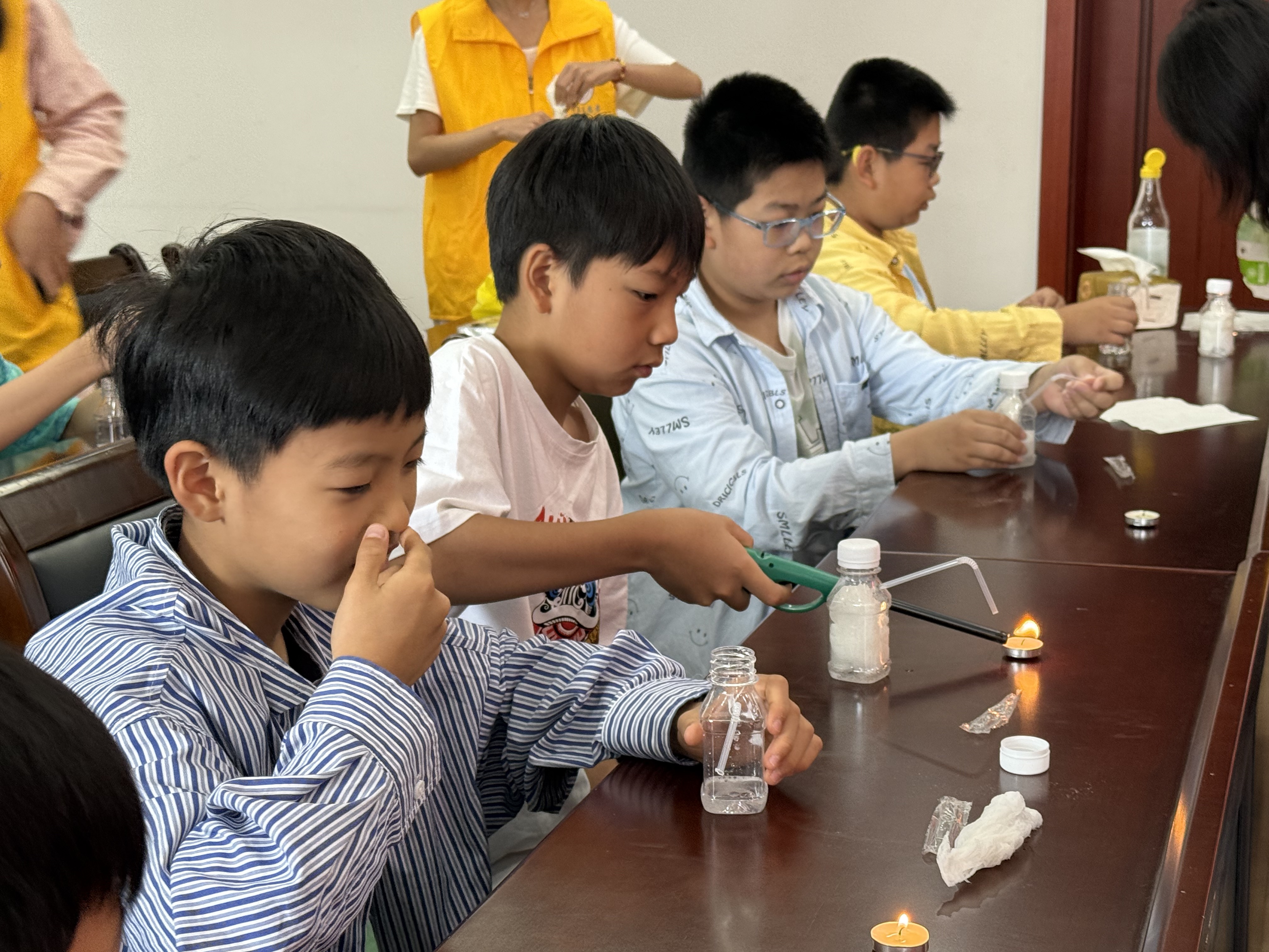 实验过程中,神奇的化学反应不断涌现。小老师在指导规范操作的同时,揭示其中奥秘。孩子们全神贯注观察现象,踊跃参与互动交流,通过亲身体验和动手实践,将消防安全知识与科学原理深度融合,切实掌握了二氧化碳灭火的核心原理。
