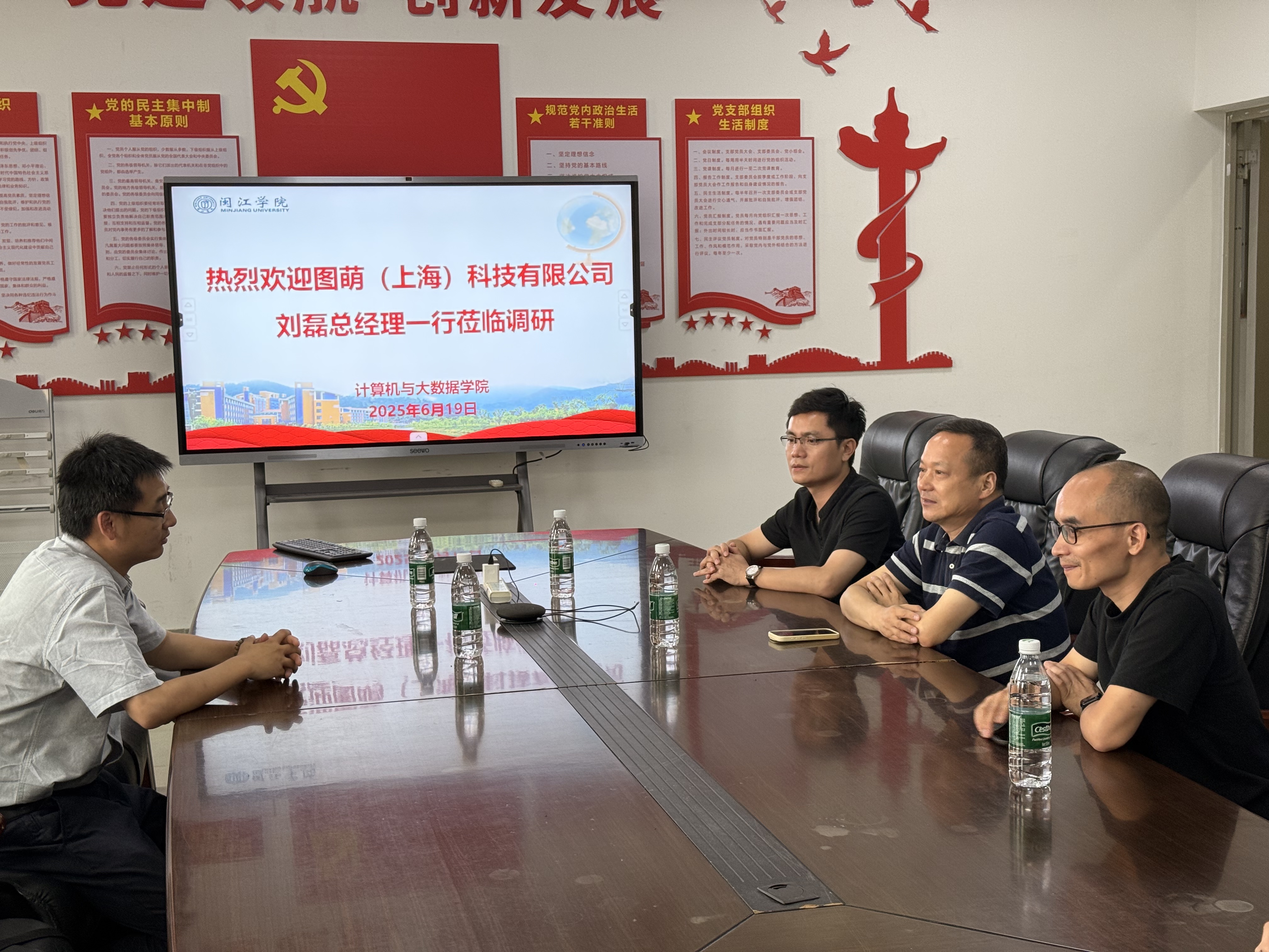 2025年6月19日,图萌(上海)科技有限公司总经理刘磊一行到访av在线 ,计算机学院院长孙知信接待并主持座谈。