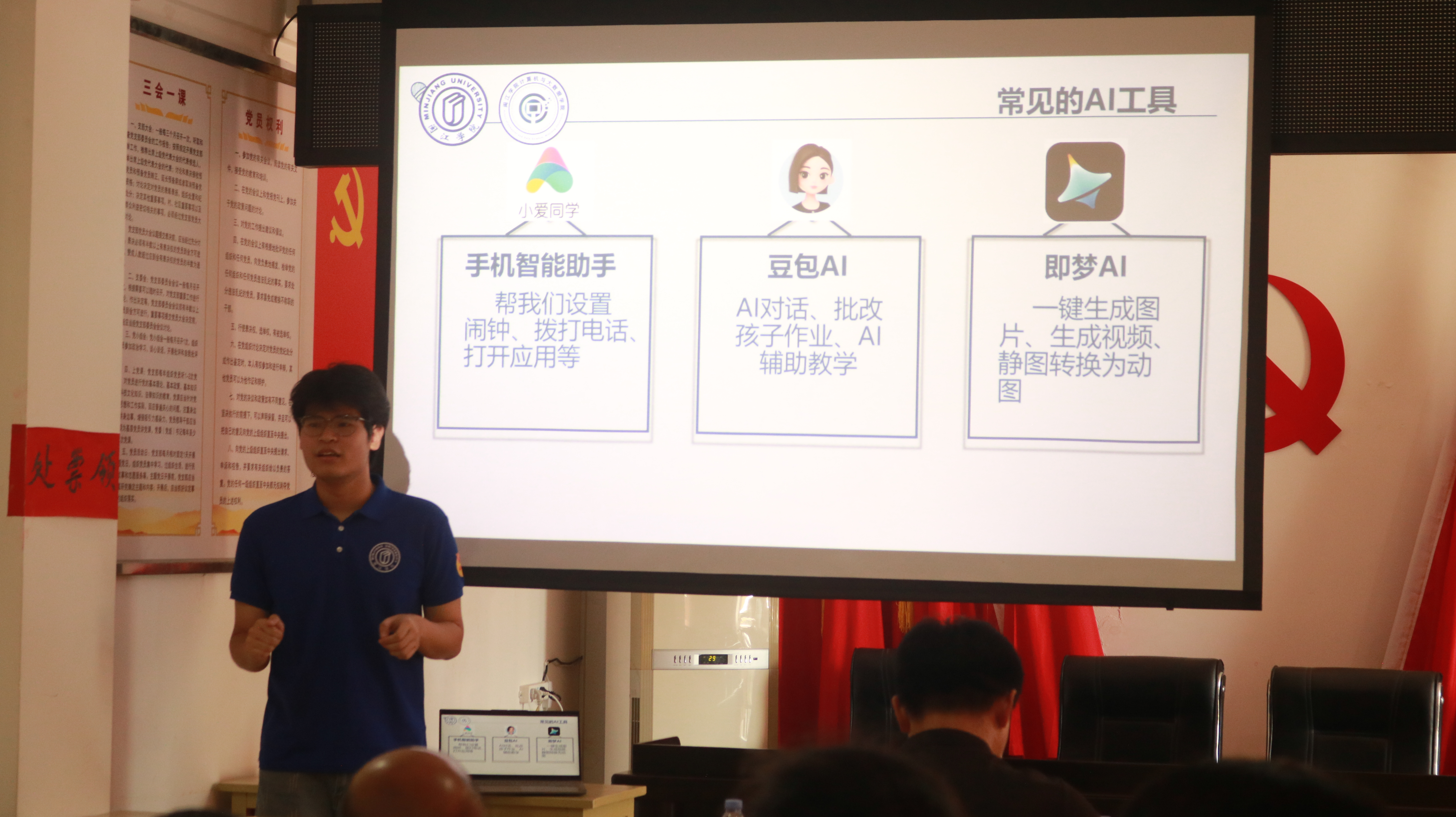 在AI科普课堂上,队员们利用专业知识为村民讲解人工智能技术的发展,队员们用浅显易懂的语言解释了人工智能的原理以及应用,并为村民们科普了常用的AI软件以及用法。互动环节,队员们为村民演示AI软件的用法,与村民们积极互动。