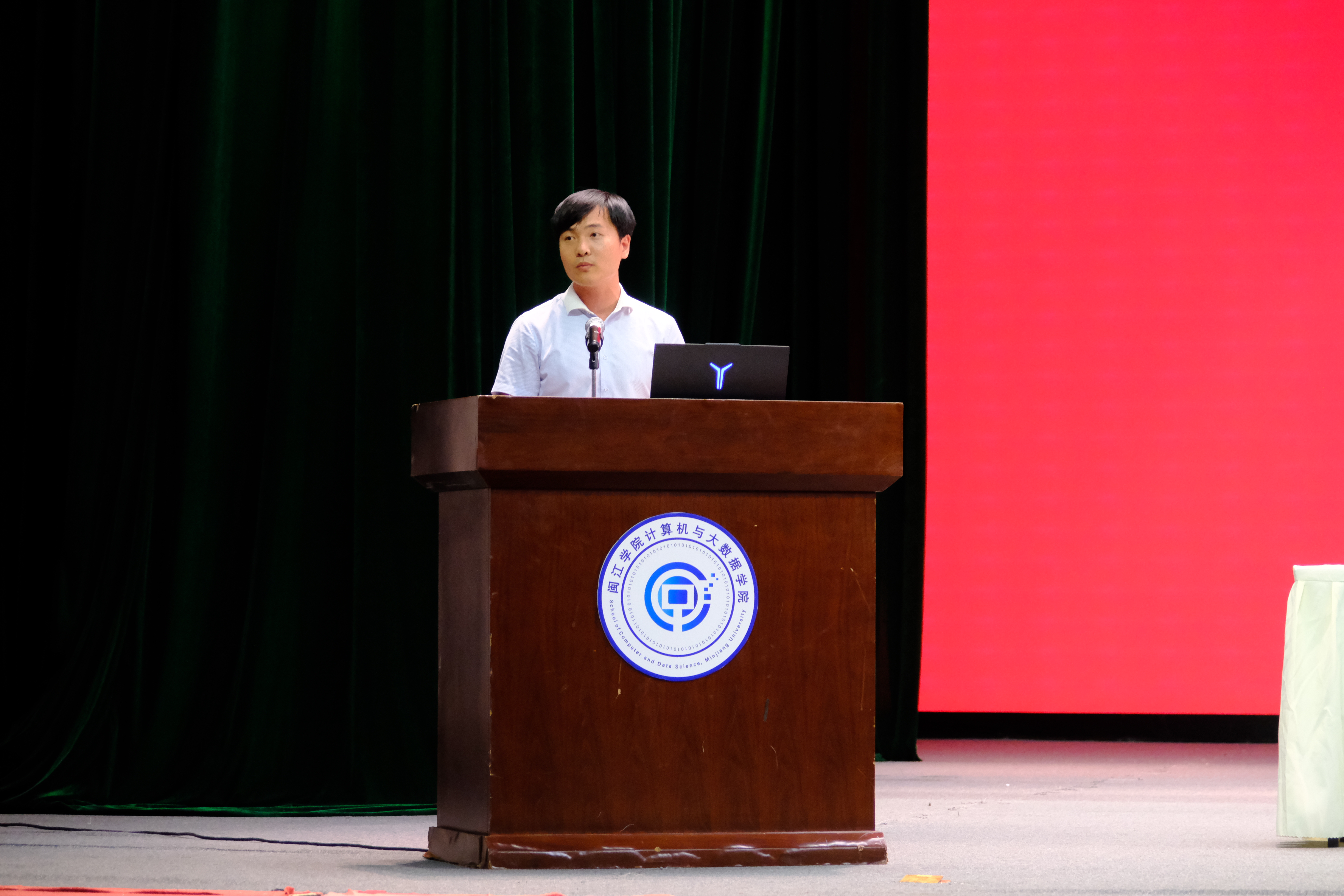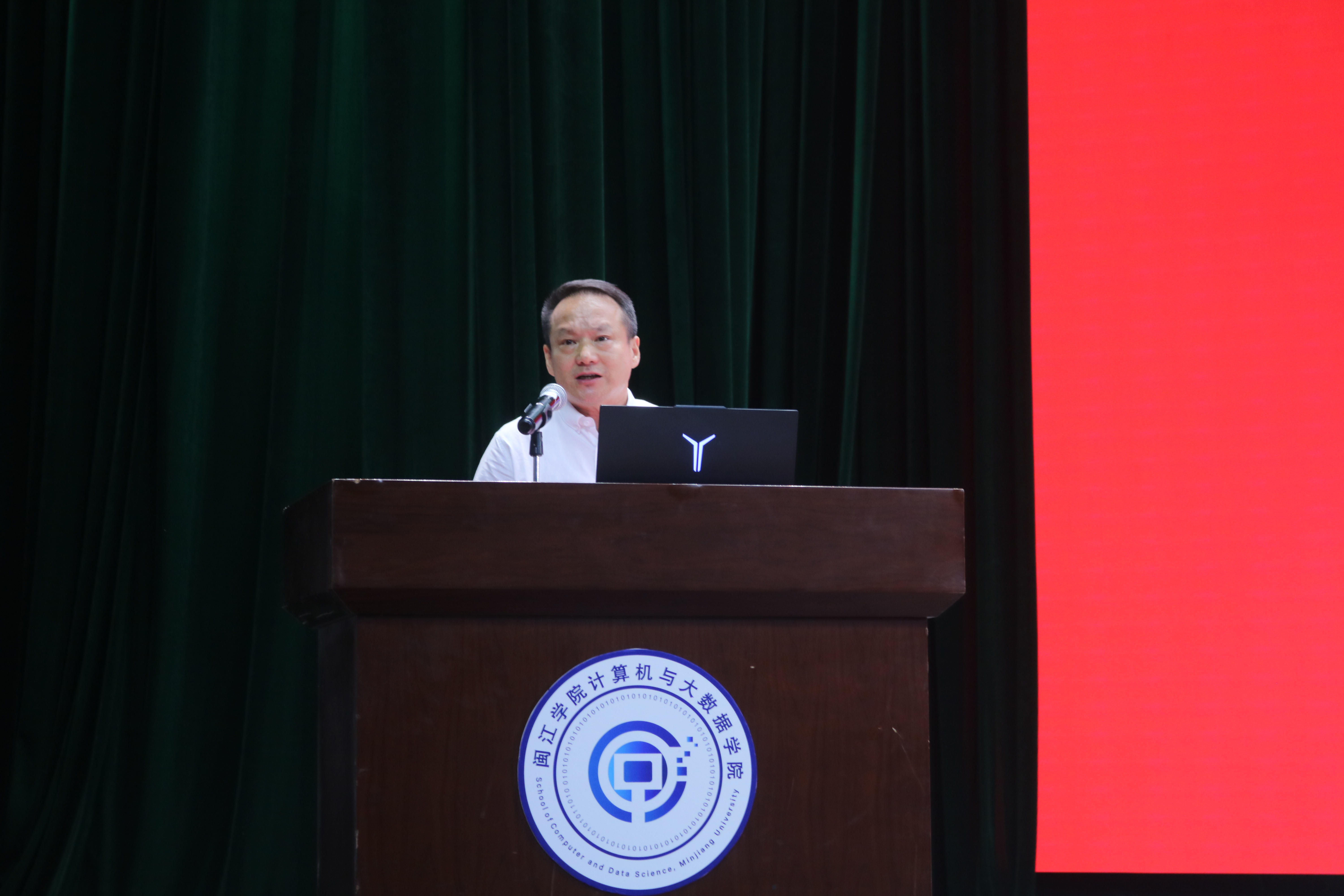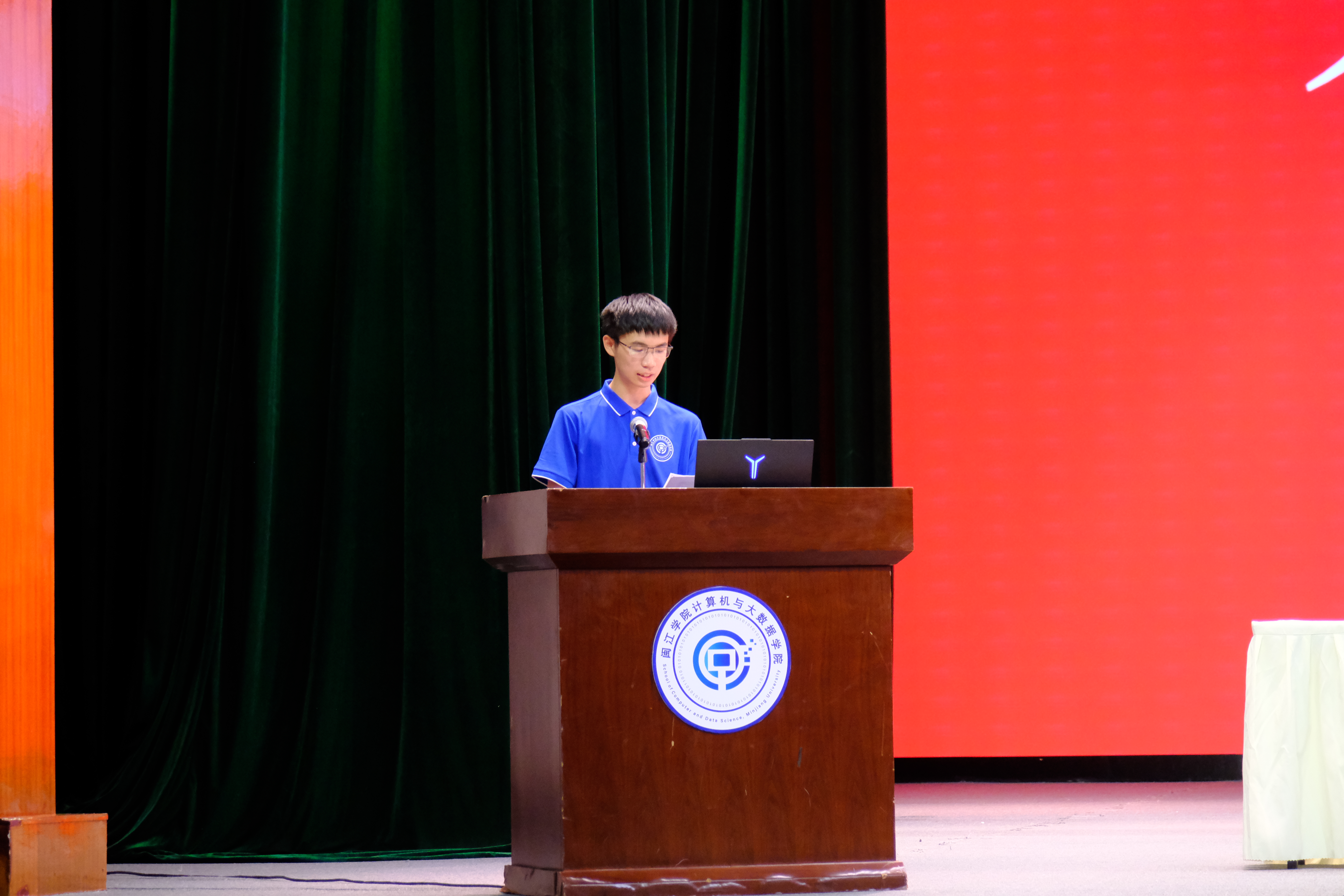 致辞环节,计算机学院院长孙知信带领全体师生重温了av在线 的光荣传统。面对国家所需、时代所向,他勉励同学们钻研核心技术、勇攀技术高峰,在“数字福建”的蓝海中扬帆,在“数字中国”的浪潮中弄潮。努力成长为有理想、有本领、有担当的数字时代新人。在“崇尚完美、追求卓越”校训的指引下,于数字中国的宏伟蓝图中书写青春华章。