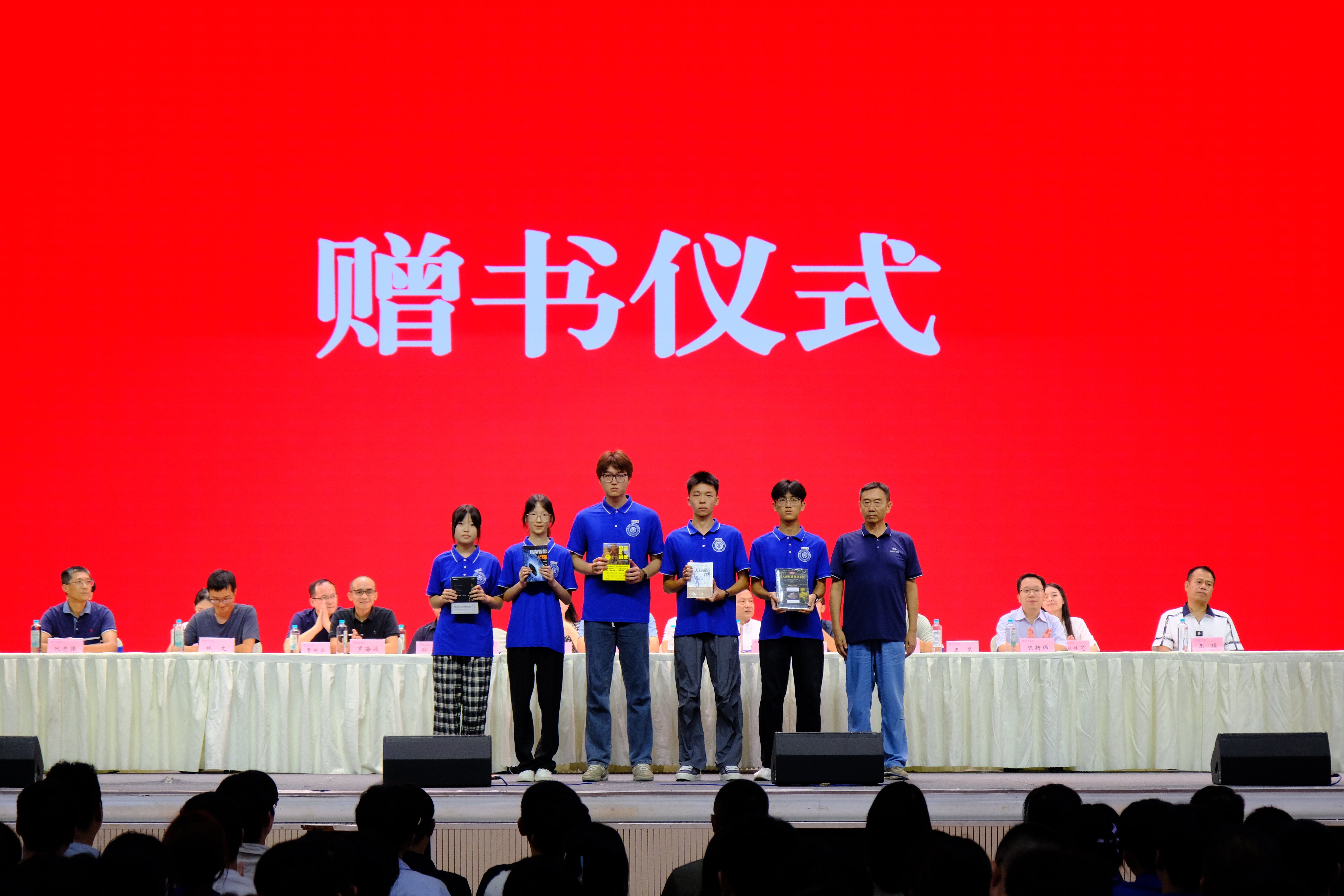 在赠书环节,经各专业负责人积极推荐,学院精心准备了《人工智能简史》《黑客与画家》《深入理解计算机系统》《人工智能的边界》等书籍,作为提升专业素养的课外读物赠予2025级新生。由网安学院院长田俊峰为新生代表们赠送了这些书籍,赠书不仅代表着知识的传递,更象征着学术使命的交接,希望同学们深刻理解专业内涵,夯实理论基础,提升创新能力,奋力书写为中国式现代化挺膺担当的青春篇章。