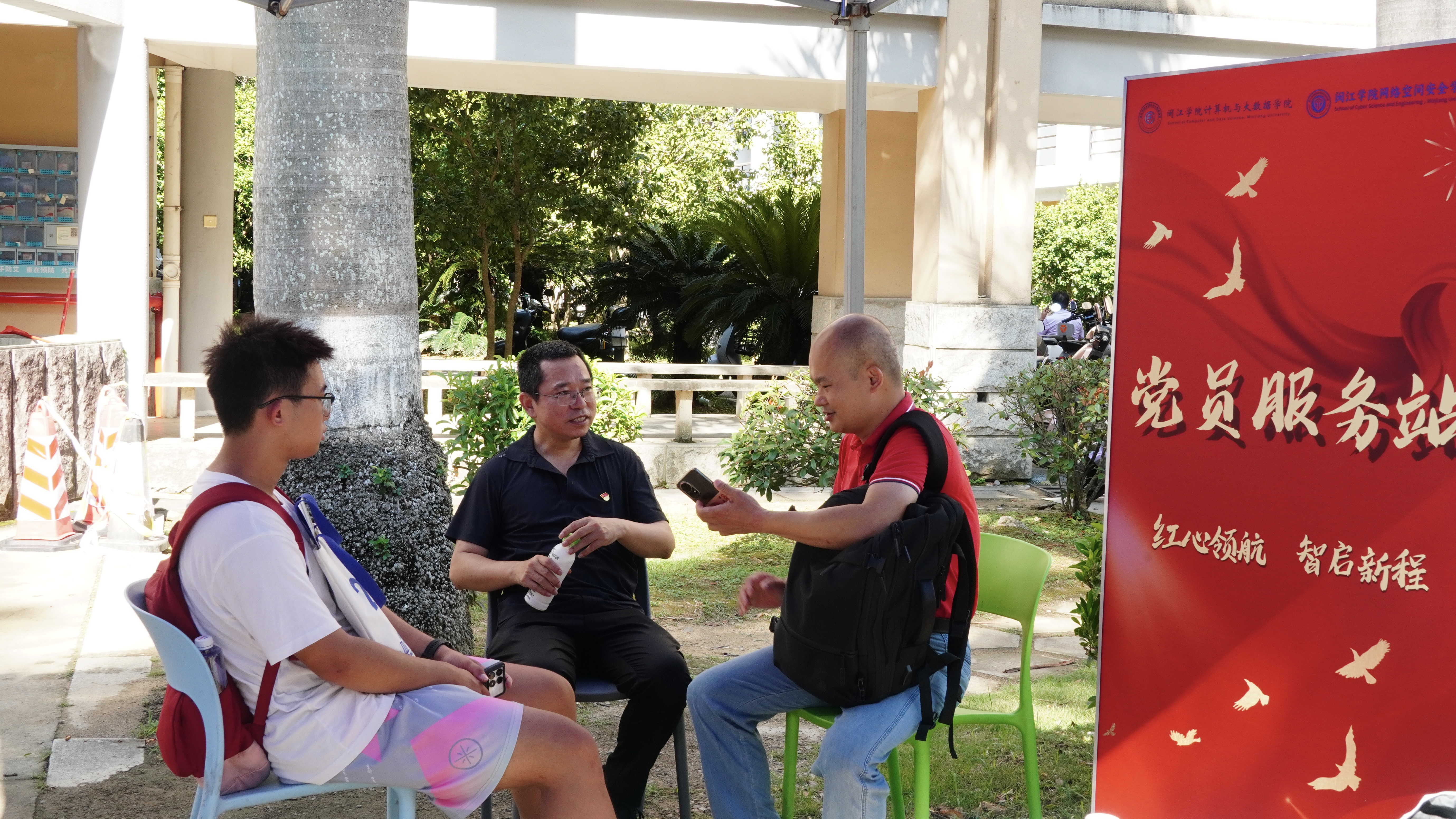 迎新现场的“党员服务站”,是新生的“贴心港湾”与“解惑窗口”,为新生及家长提供全方位支持。学生党员主动承担引导服务,协助引导新生完成报到登记、物资领取、迎新活动参与等流程,耐心引导新生并协助办理绿色通道,让“我是党员我先上”的担当成为迎新现场的“红色风景线”。