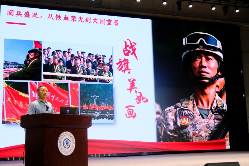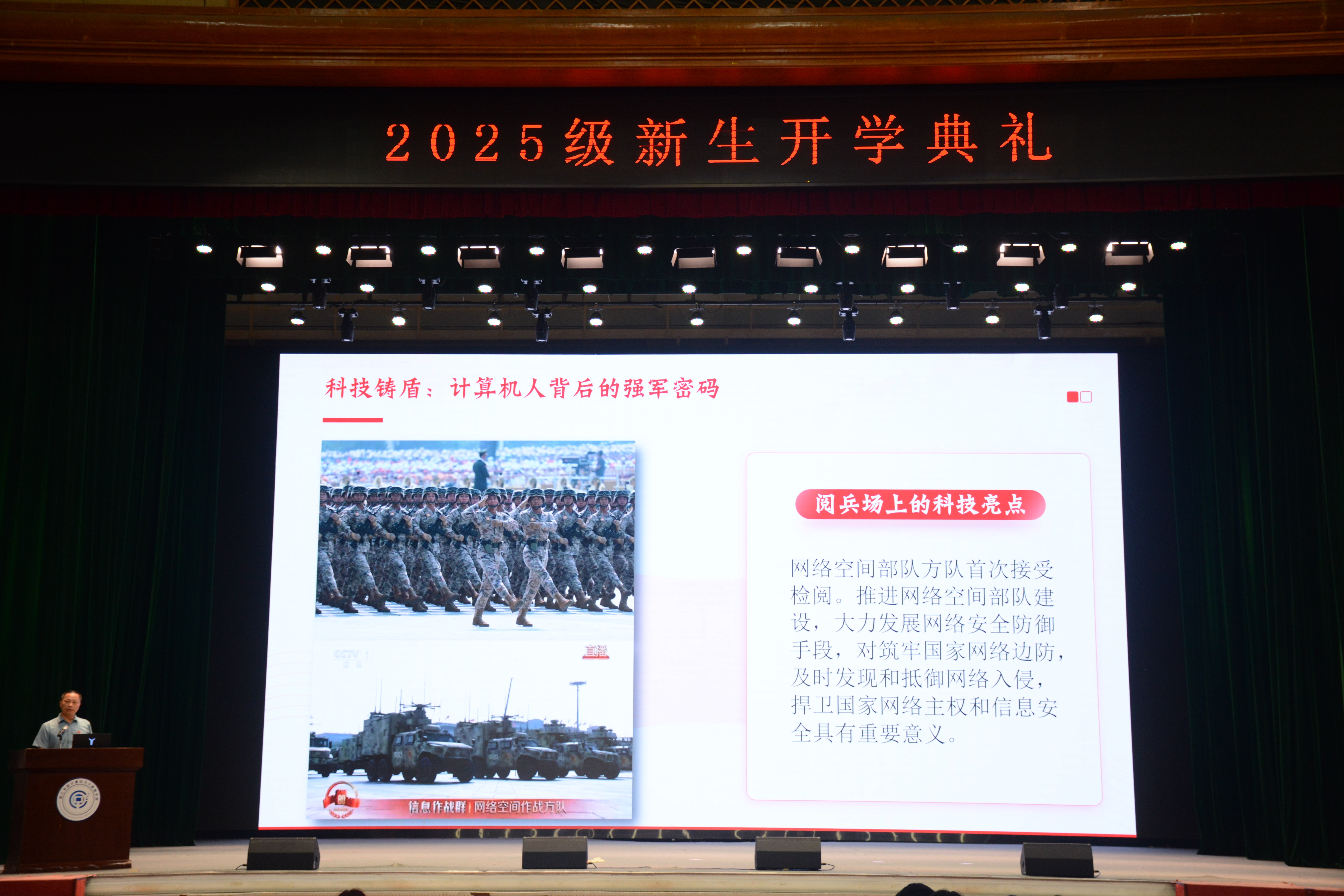 课上,林耿书记带领全体新生学习习近平总书记在纪念中国人民抗日战争暨世界反法西斯战争胜利80周年大会上发表的重要讲话,并一同回顾阅兵盛况,精彩的场面仍让在场师生激动不已。接着,林耿书记从本次阅兵的科技亮点出发,为同学们深入分析了学院相关专业的重要作用。他指出,指挥控制、自主识别、网络防护,这些先进的军事技术都离不开高精尖的算法与代码,本次阅兵成功的背后有无数计算机人的辛勤付出。