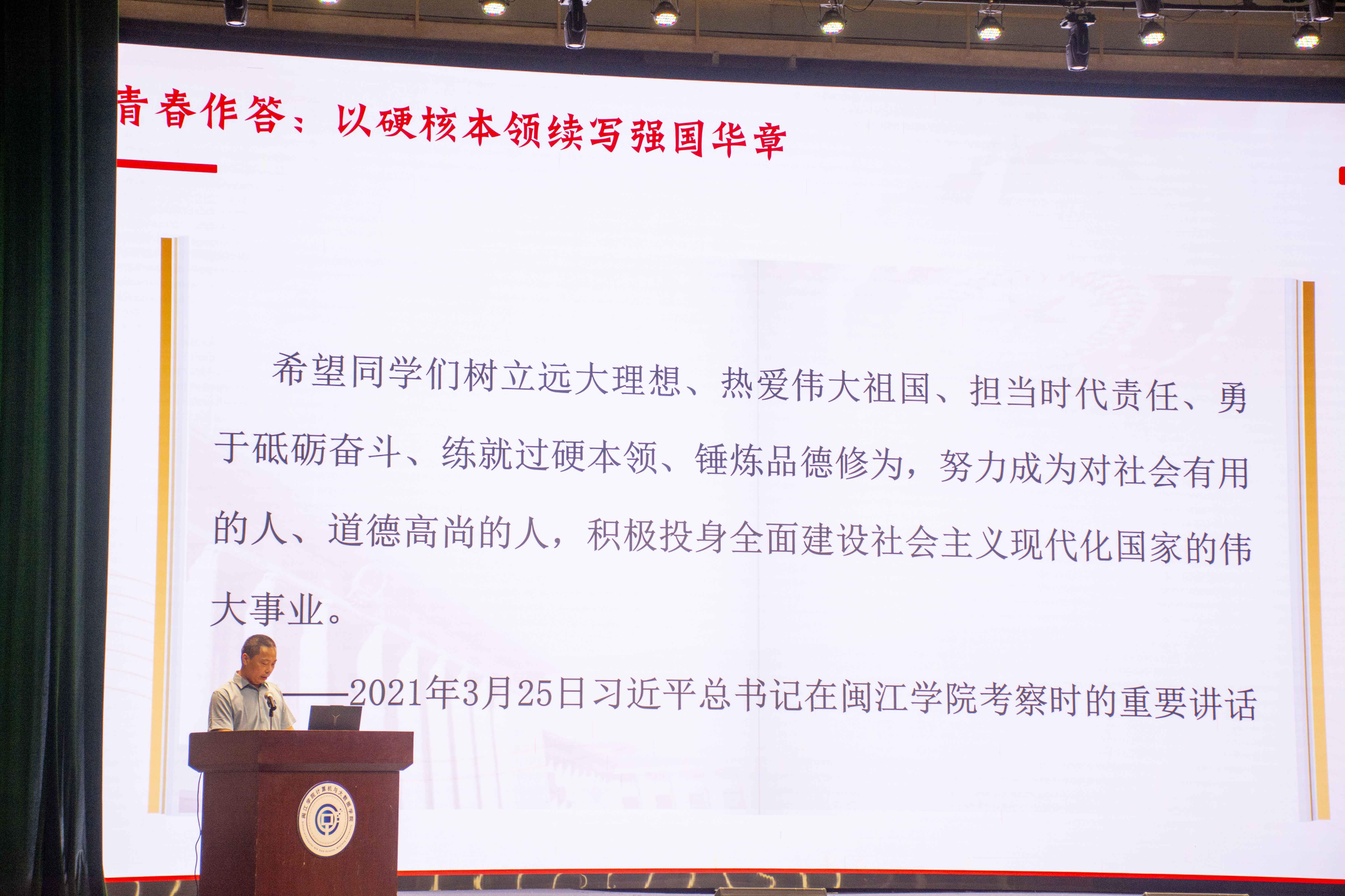 为深入开展爱国主义教育,铭记抗战历史,弘扬伟大抗战精神,引导2025级新生坚定理想信念,自觉以习近平新时代中国特色社会主义思想武装头脑,2025年9月8日,av在线 、网络空间安全学院于融侨文体中心举办“书记第一课”活动,学院党委书记林耿为新生作《弘扬抗战精神,青春挺膺担当》的主题讲座,2025级全体新生参加。