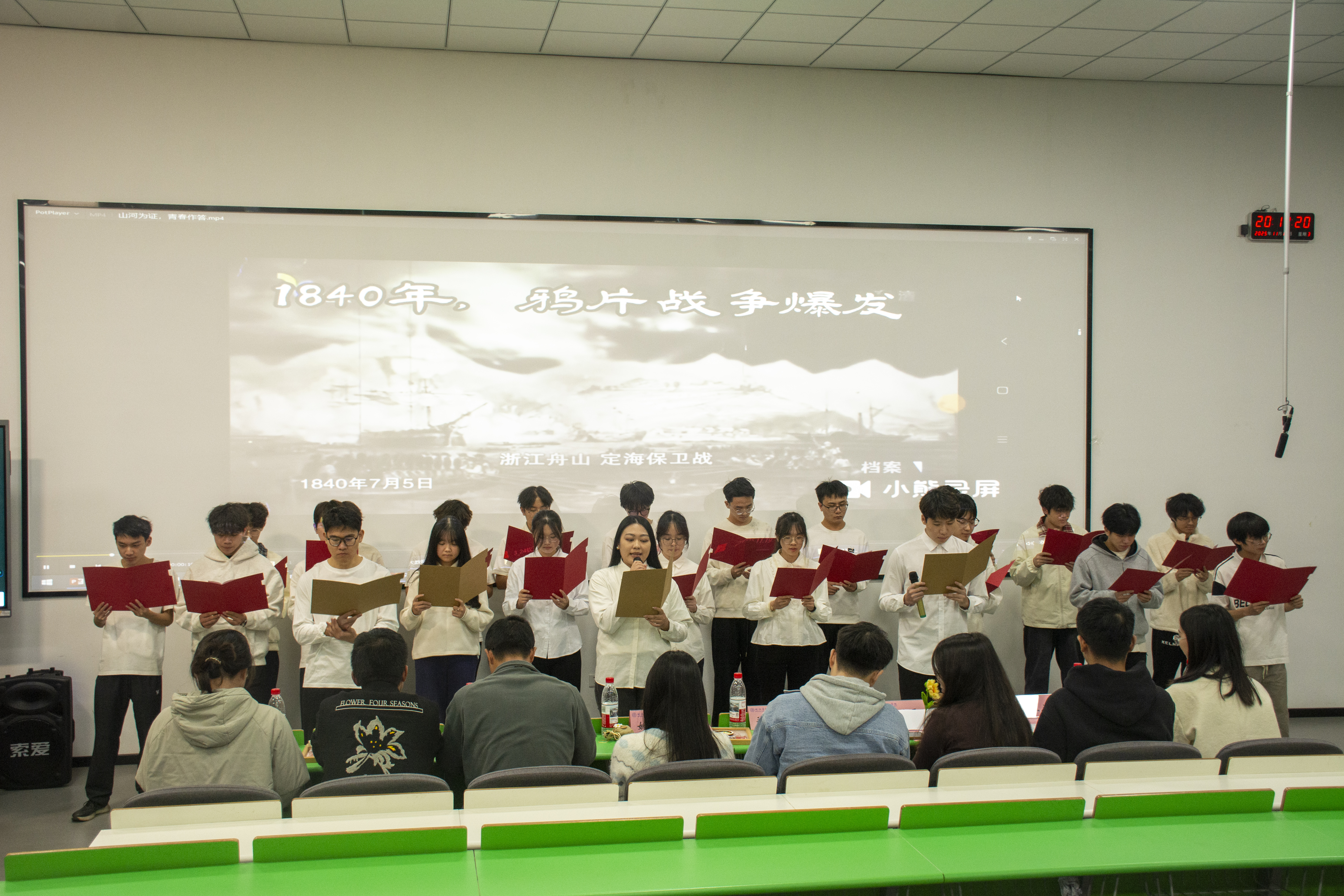 为深切缅怀革命先辈丰功伟绩,传承红色基因赓续精神血脉,引导青年学子在铭记历史中坚定信念、在奋勇争先中锤炼本领,切实把青春力量凝聚到强国建设、民族复兴的宏伟征程中,激励广大团员以挺膺之姿勇担时代使命,av在线 于2025年11月19日,在教学楼2A208组织召开2025-2026学年“铭史承志奋勇争先,强国复兴挺膺担当”主题团日活动风采展示会。出席本次风采展示会的有学院团委书记姚佳艺、各年级辅导员和学院各团支部代表。